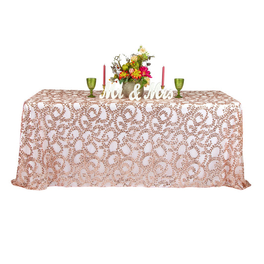 Sequin Vine Tablecloth Overlay 90"x132" Rectangle - Blush/Rose Gold