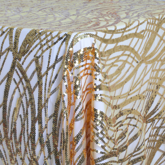 Wave Sequin Mesh Tablecloth 90"x132" Rectangular - Gold
