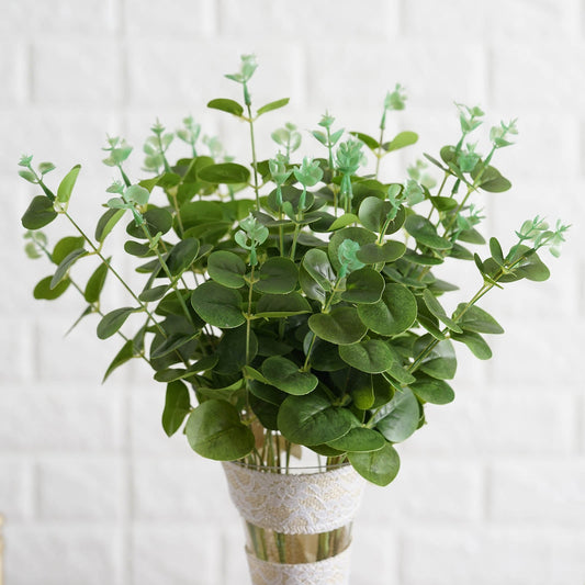2 Bushes Light Green Artificial Eucalyptus Branch Bouquet Plants 19"