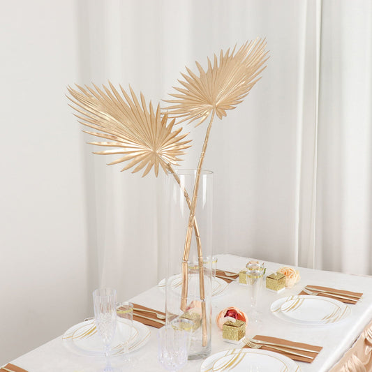 2 Pack Shiny Golden Artificial Tropical Plant Fan Palm Leaf Stems, Faux Floral Arrangements Table Centerpiece Decor 34"