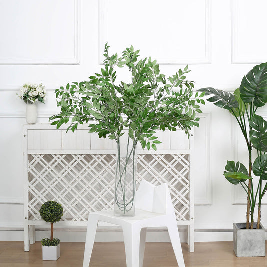 2 Bushes Light Green Artificial Silk Plant Stem Vase Fillers, Faux Honey Locust Branches 42" Tall