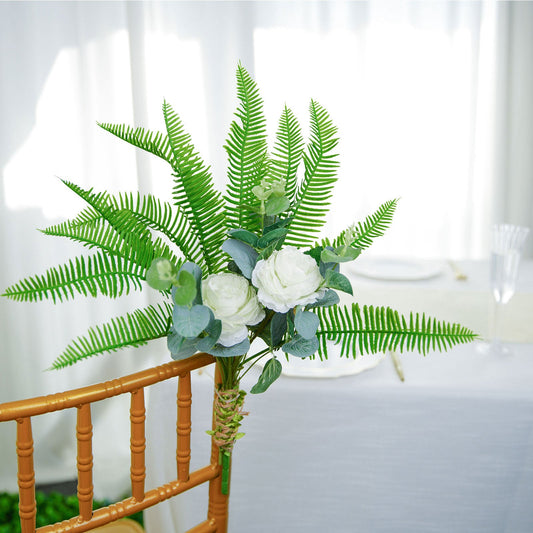 2 Stems Green Artificial Boston Fern Leaf Plant Indoor Faux Spray 18"