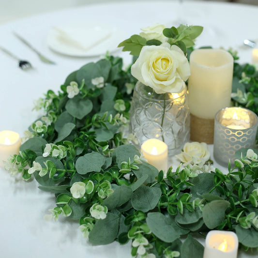 2 Pack White Tip Artificial Eucalyptus Genlisea Leaf Mix Wreaths 21"