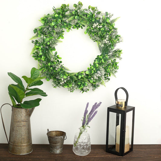 2 Pack White/Green Artificial Lifelike Boxwood Fern Mix Spring Wreaths 22"
