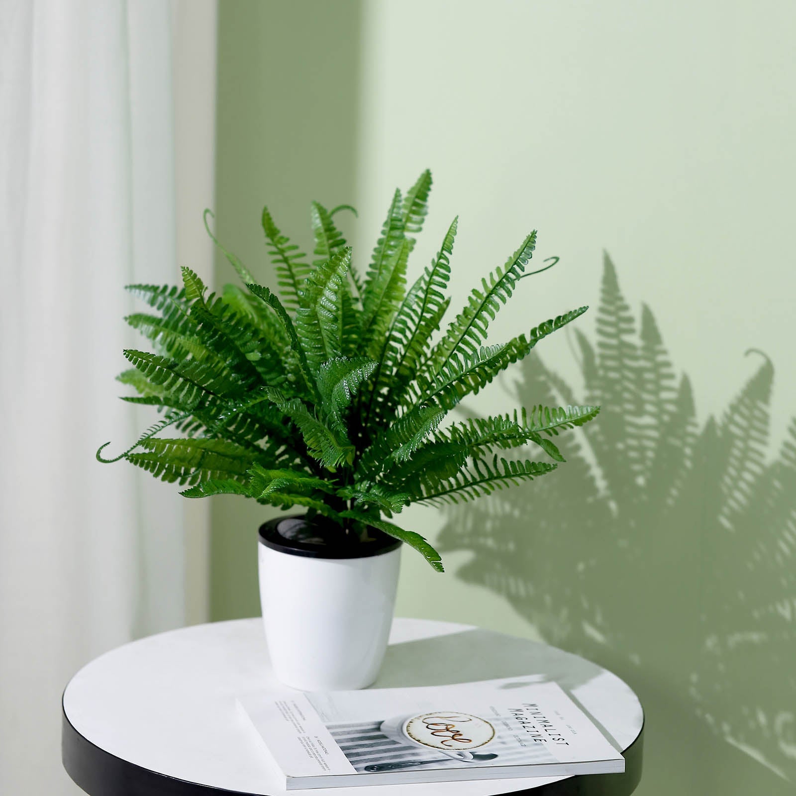 2 Stems Green Artificial Boston Fern Leaf Plant Indoor Faux Spray 18"