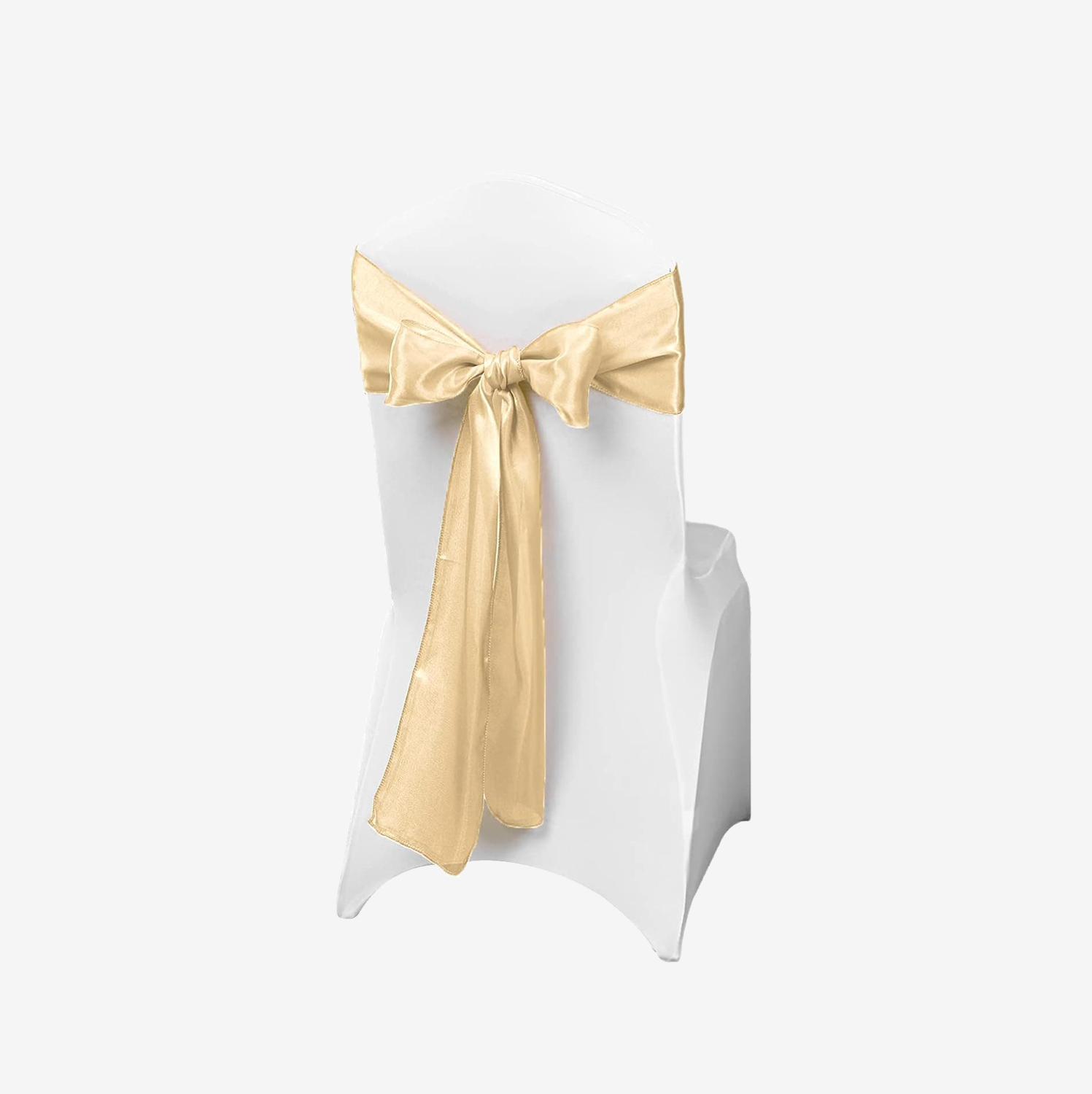 - 🍔【Package Include】You will get 50 PCS Satin Sash Chair Decorative Bow Designed Chair Cover Chair Sashes.Color: Champagne. Size: 7" x 108" (17x275cm).The approx length makes these sashes a perfect choice for all them of party & wedding chairs.Flat Packing, please DIY to tie the bow yourself. Chair Sashes Only ,White Covers not included.