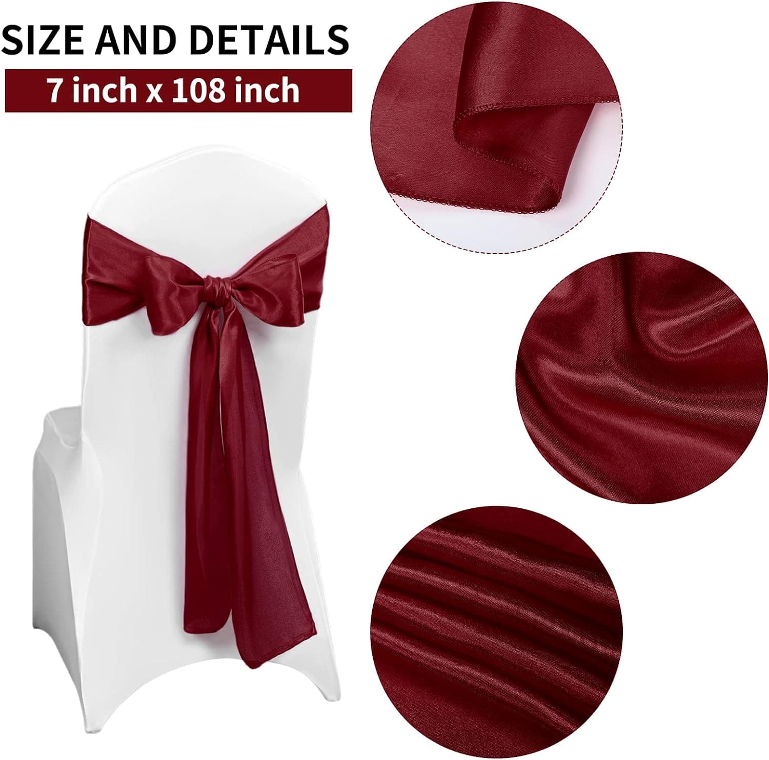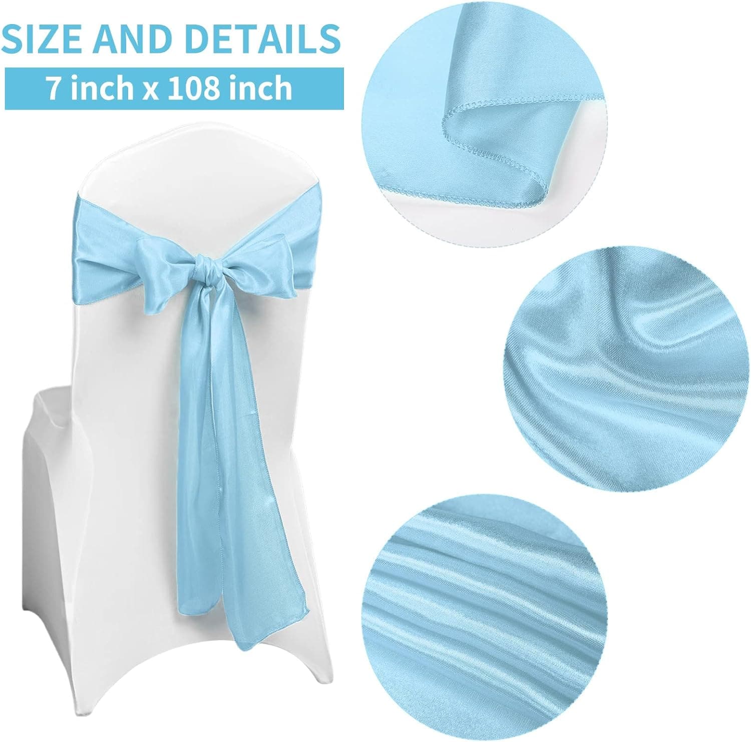 - 🍔【Wide Use】Chair sashes are the main decorative item for a party, wedding chair. Satin Chair Decorative Bow Designed Chair Cover can be used for Christmas crafts, dance wear,organza bags, DIY craft, home decor, party decor, hair bow making, Chair sash,table runner and more.Chair sashes help a decorator to arrange a theme-based marriage, office, birthday, anniversary party, and event. Satin Sashes for Chair are Unique Decorations for Wedding Banquet Party or Dining Room.