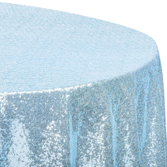 Glitz Sequins 132" Round Tablecloth - Baby Blue