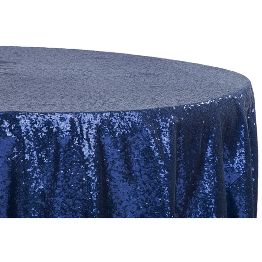 Glitz Sequins 132" Round Tablecloth - Navy Blue (New Tone)