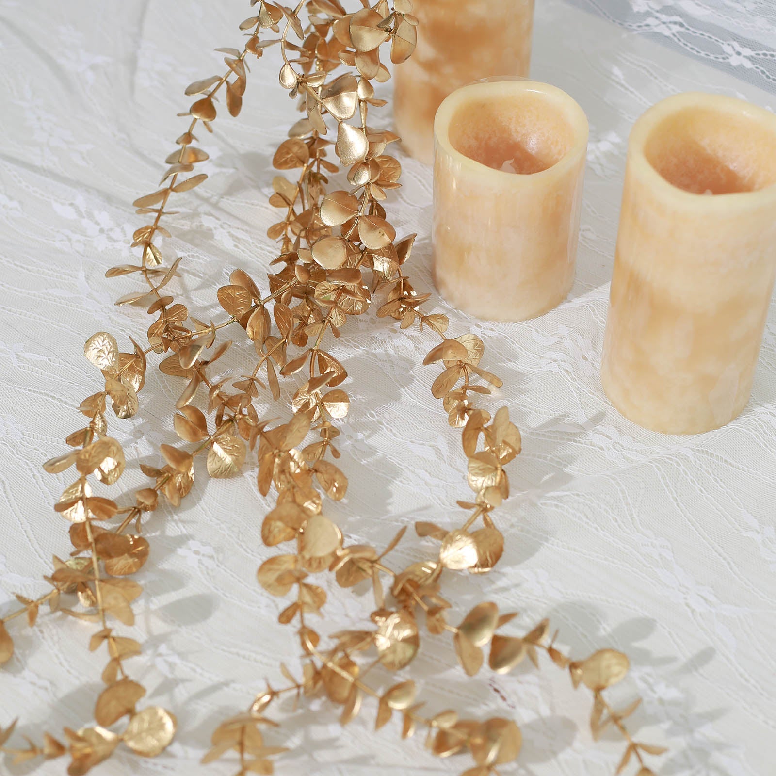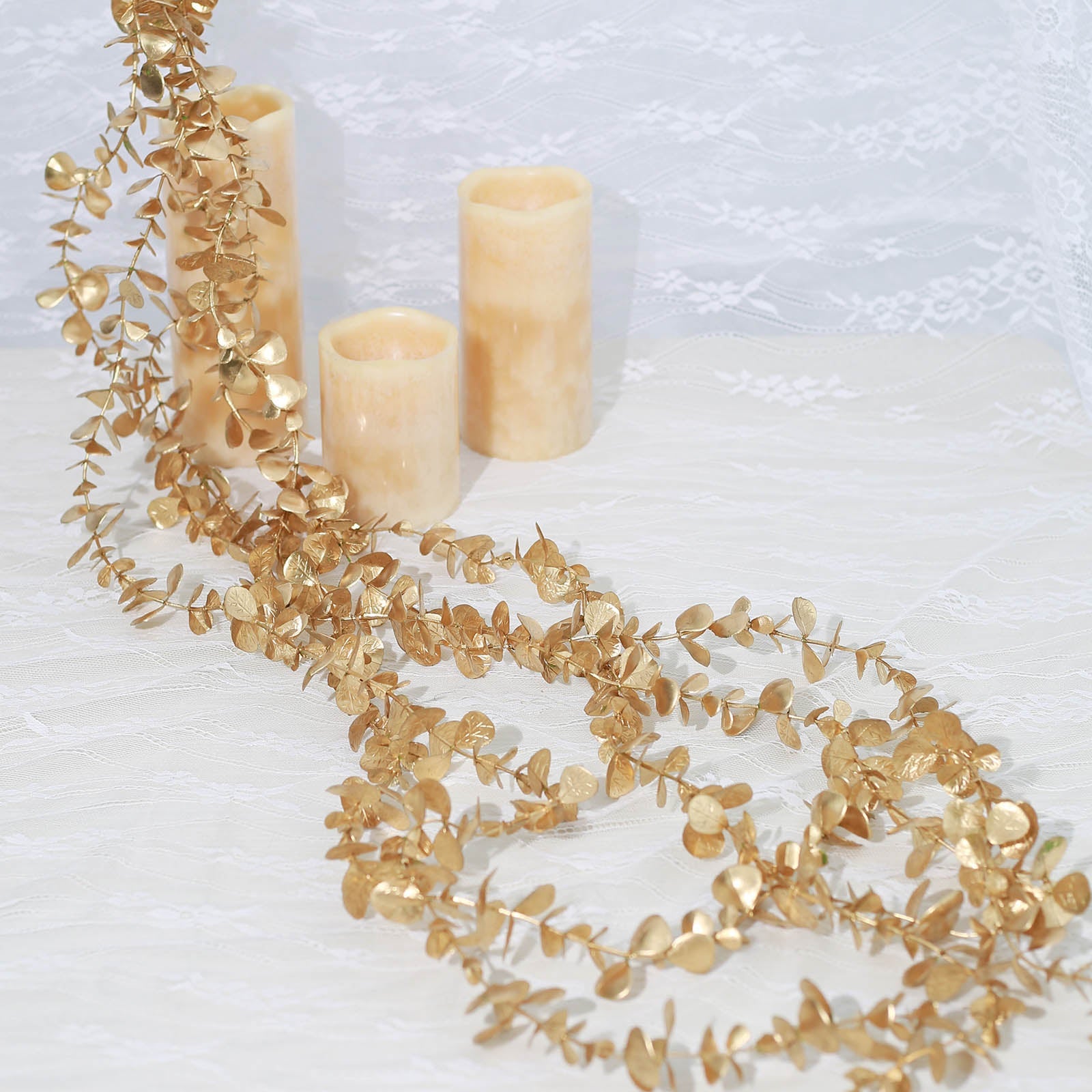Metallic Gold Artificial Eucalyptus Leaf Garland, Faux Vine 4ft