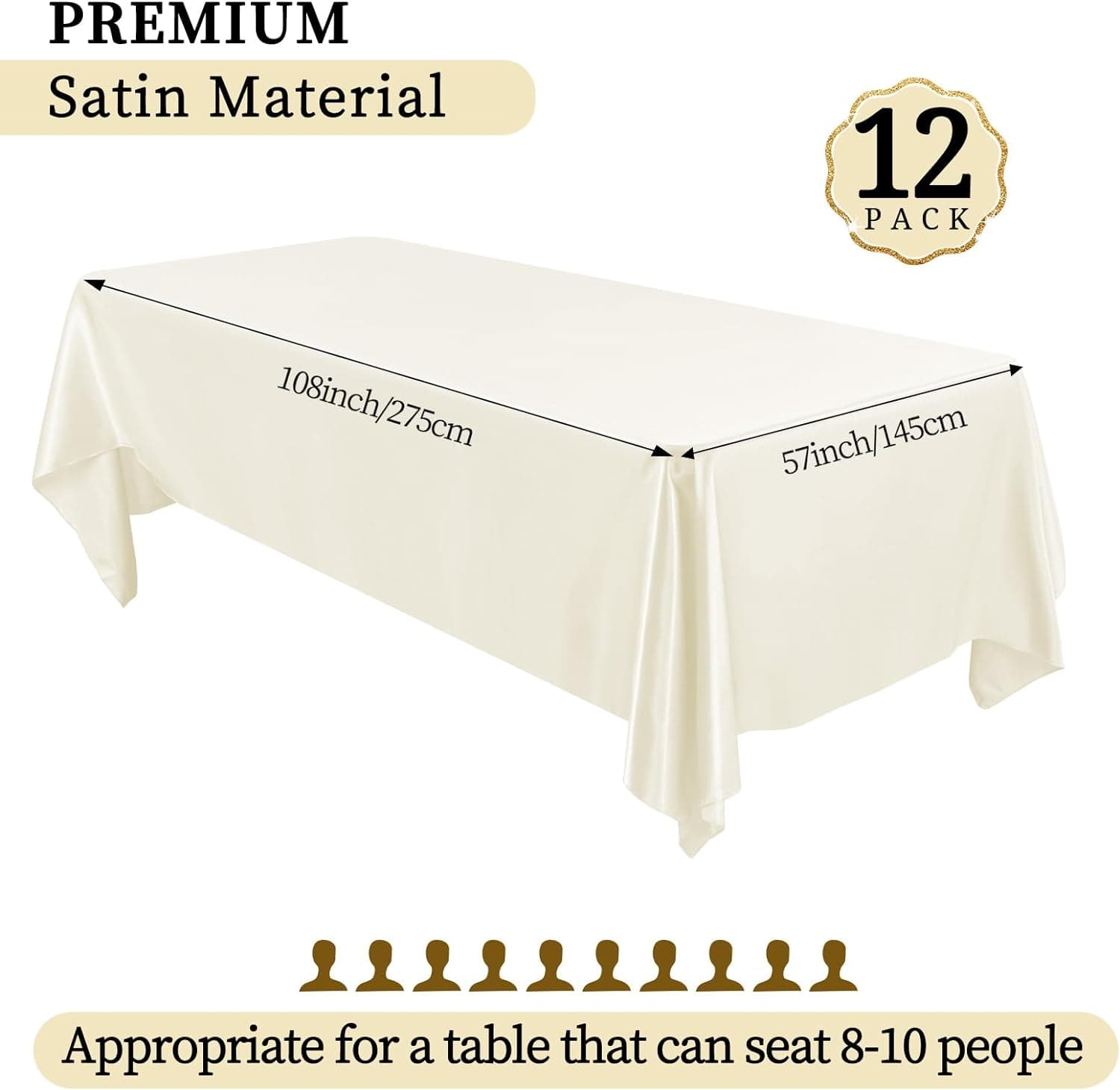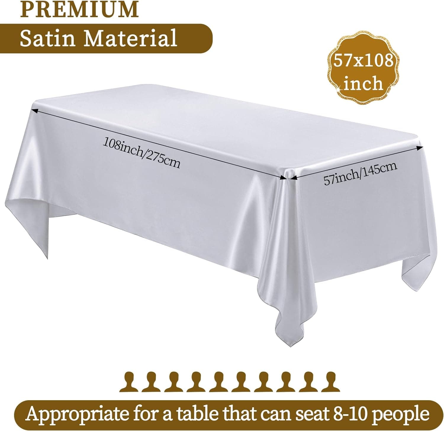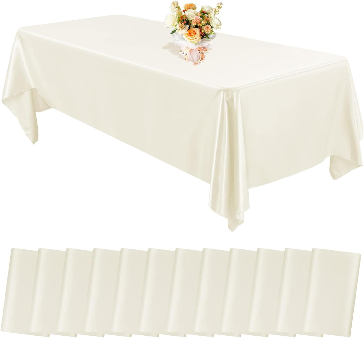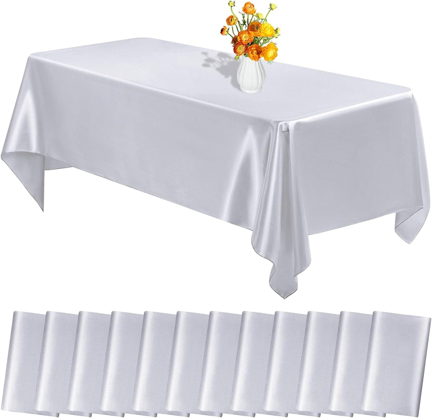 - 🍙【Package Includes】12 Pieces premium sliver satin tablecloth. The size of silk satin table cover is 57 x 108 inches / 145 x 275 cm, great for decorating tables which can accomodate 8 to 10 people; Sufficient quantities are sufficient for party events to enhance the charm of your event decoration.