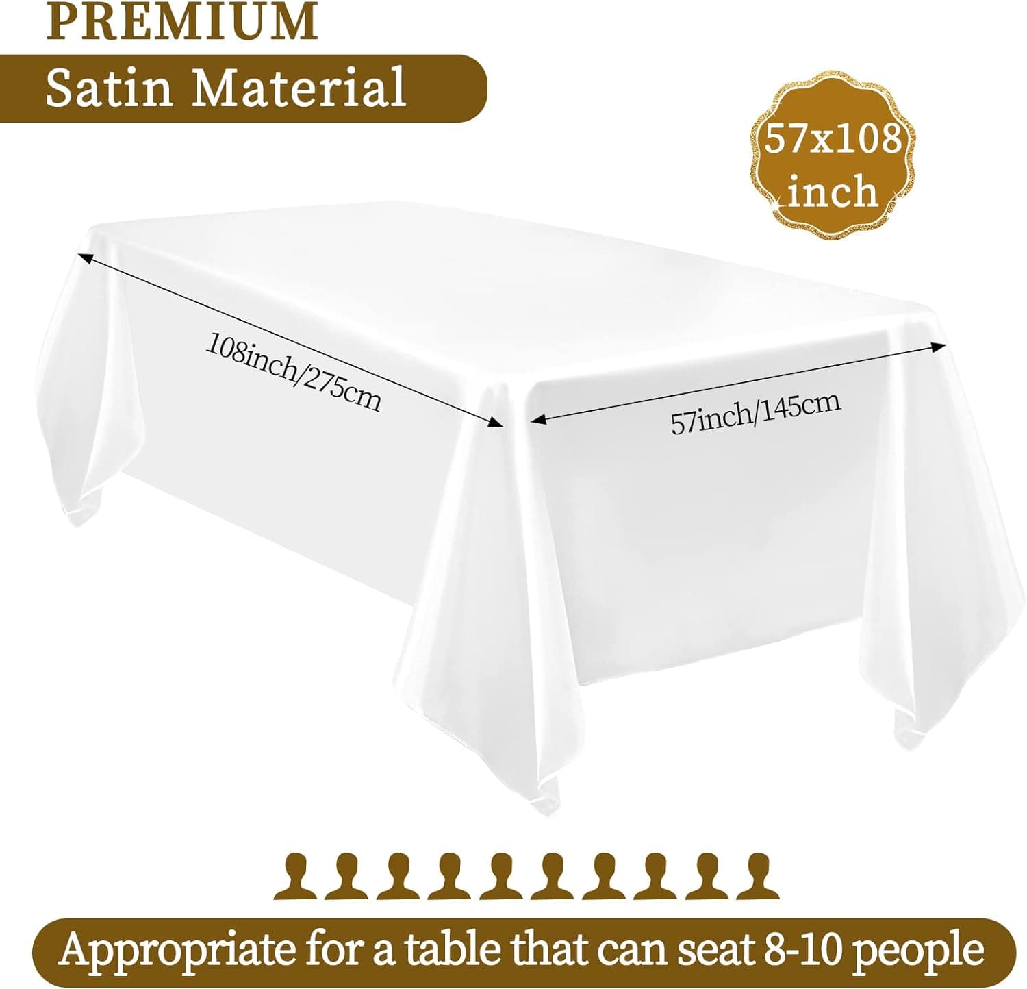 - 🍙【Ideal Table Decor】Our large size satin tablecloth, simple, elegant, and can be hardly out of date, the solid color makes it suitable for various occasions, you can use this tablecloth independently to decorate your dining table, you can also use it with napkins or placemats to decorate your coffee table or other household surfaces, beautiful and practical.