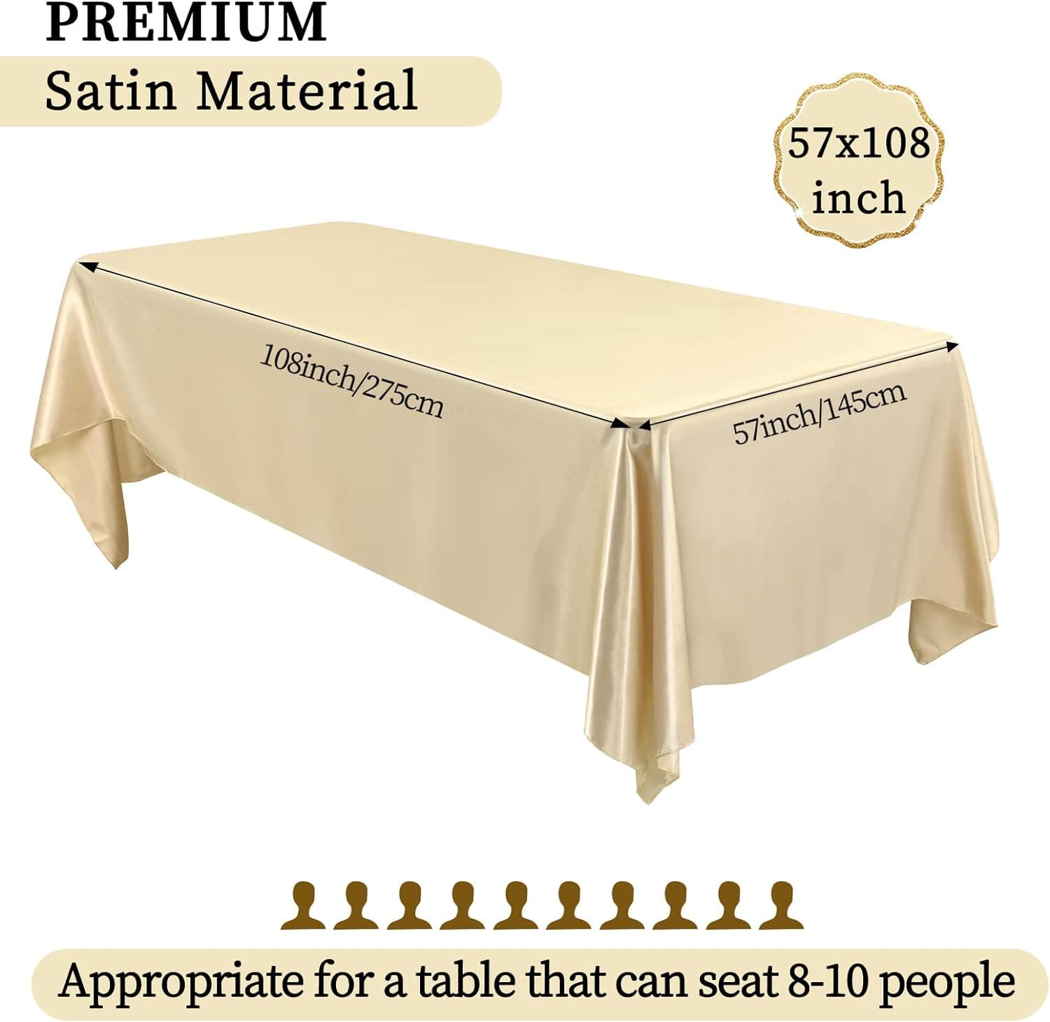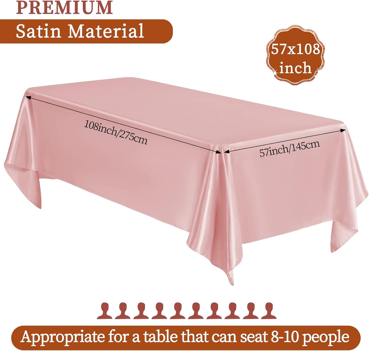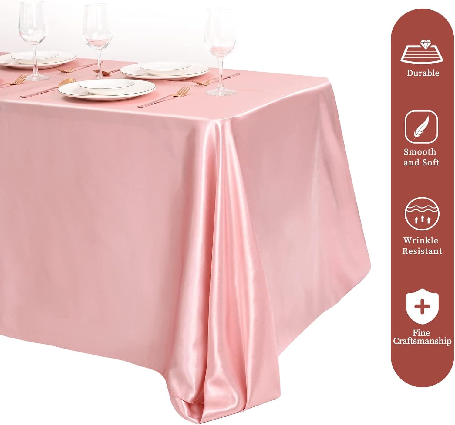 - 🍙【Premium Material】The bright silk tablecloth is made of satin fabric, soft, smooth, durable, not easy to fade and wrinkle, with good brightness and drape feeling, it can be not easy to deform, which can meet your needs for a long time and protect your table. The exquisite design and elegant color make the table cover an ideal decoration for your dinner party.