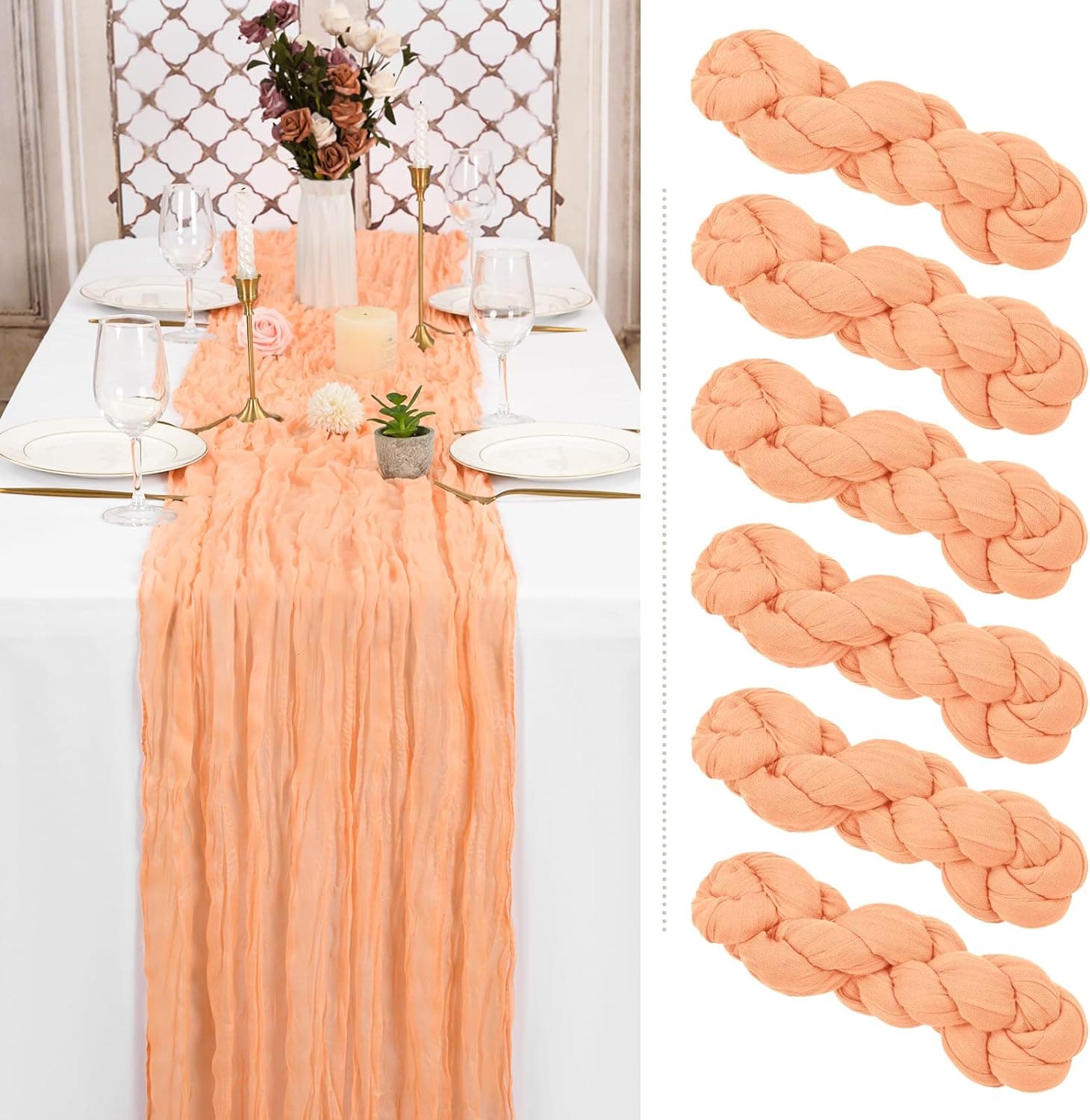 • 👑【Product Included】: You will receive 6 pcs terracotta cheesecloth gauze table runners. Product size: 35 inches wide and 120 inches long, suitable for round or square tables that can accommodate 8-10 people. Perfect for romantic and elegant party events.