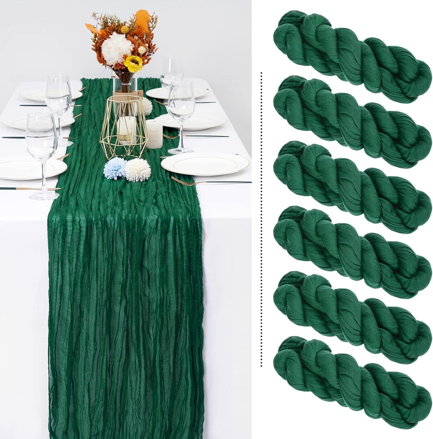 • 👑【Wide Use】: Cheesecloth gauze table runner has a bohemian style, whether it is used for photography backgrounds, art deco, chair belts, arches, curtains, tablecloths, it will bring a good aesthetic and make people shine. Cheesecloth gauze table runners are perfect for weddings, birthday parties, bridal showers, banquets, family dinners, candlelight dinners, Valentine's Day dates and various event decorations.