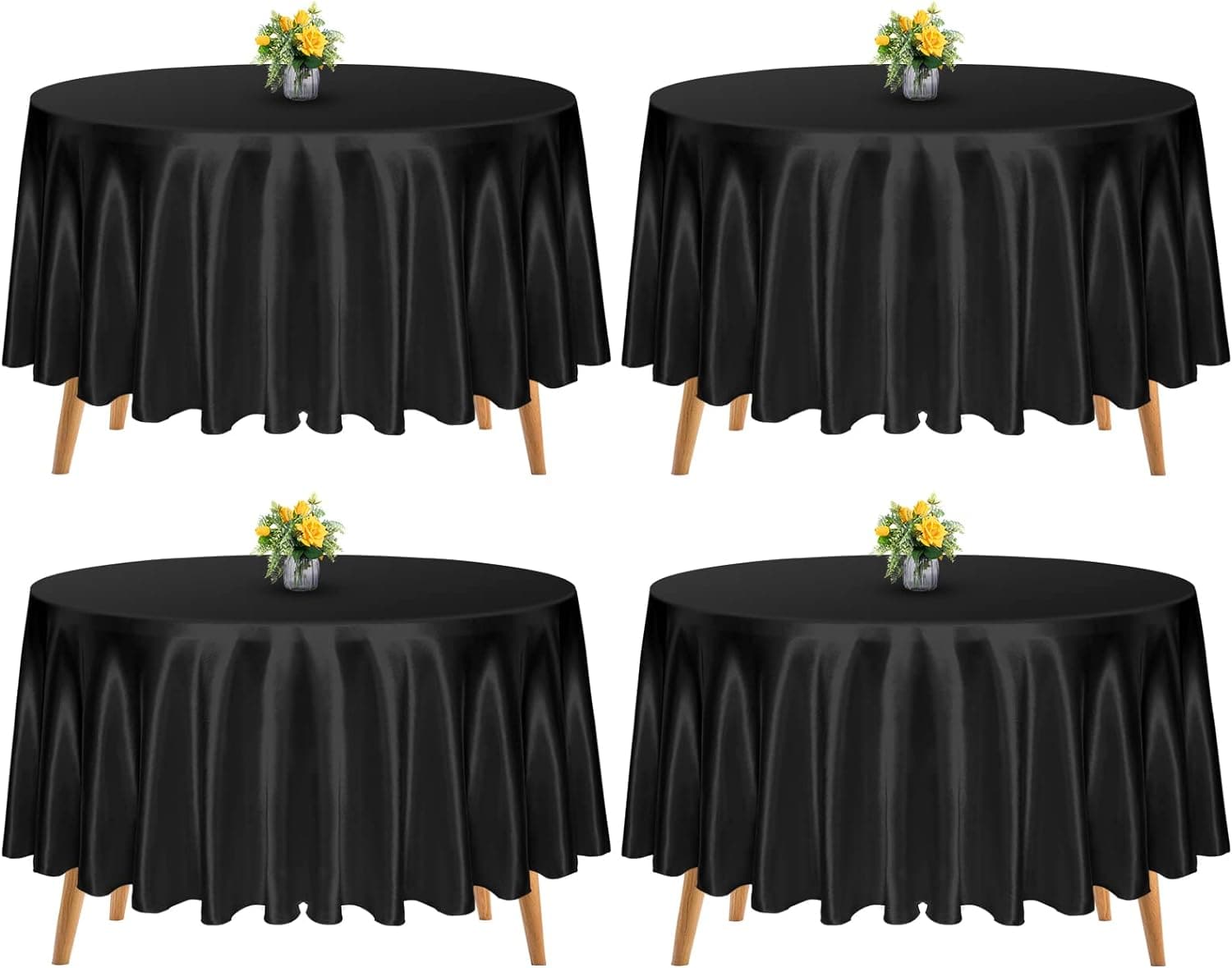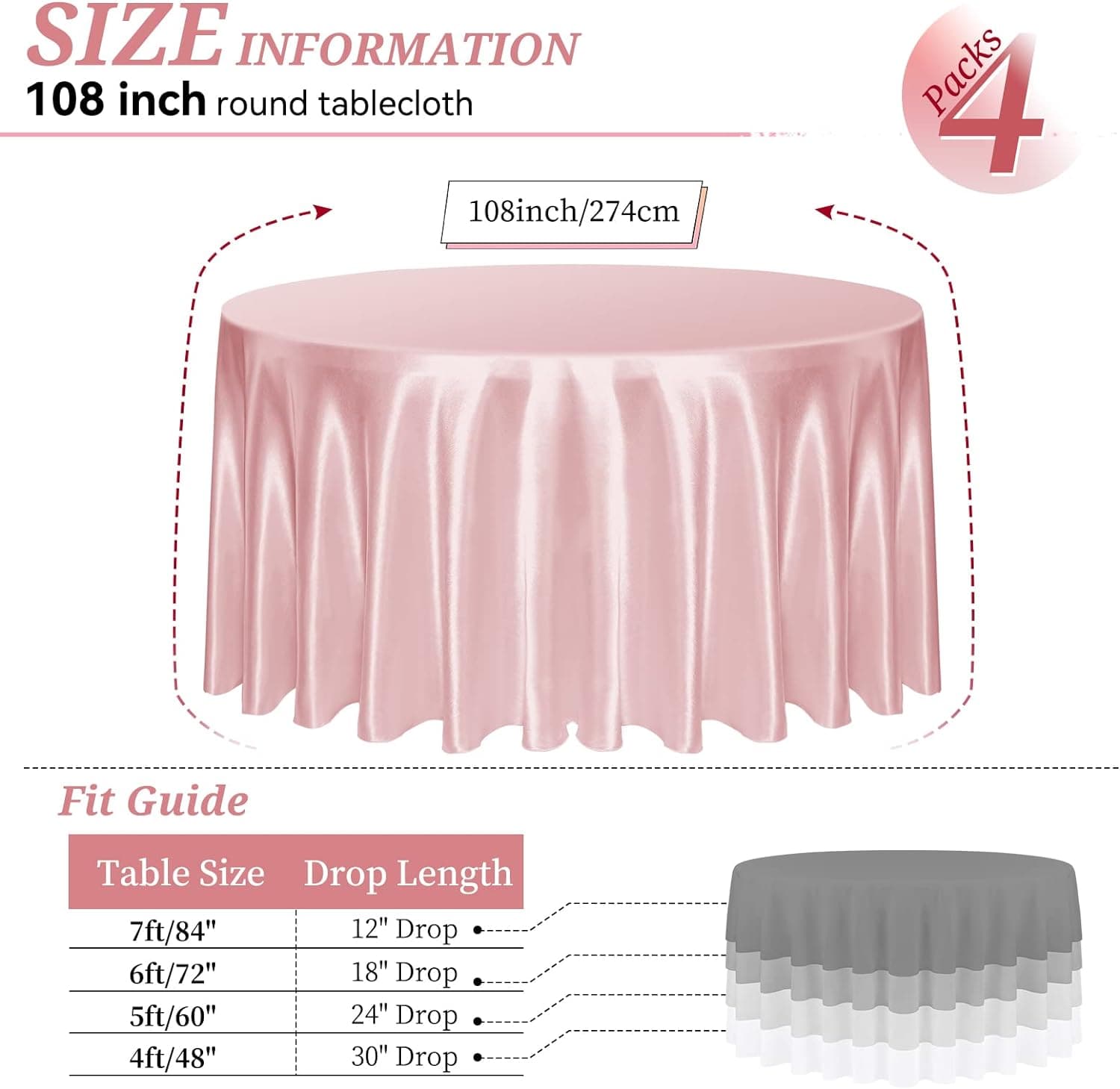 - 🌼【Package Include】You will get 4 pieces white satin tablecloths.The white satin tablecloths are 108inch / 275cm.Premium tablecloth for parties.Suitable for tables of many sizes. Unlike other large size tablecloths, every tablecloth is a complete fabric! The shiny white satin tablecloth makes a nice decorative touch, create an elegant and romantic atmosphere. Great ideal for wedding table decorations for the reception.