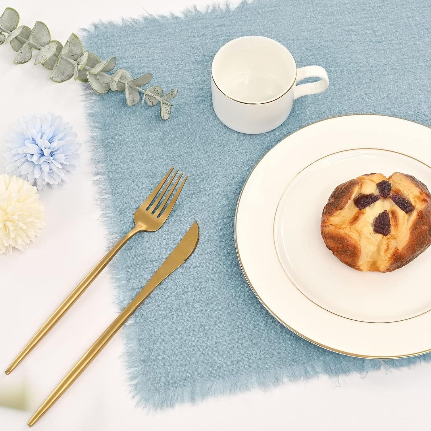 - 🥂Fringe Design:Each napkin takes a lot of time to make because the fringe is hand-pulling,looks so delicate,add a soft touch to your table decor.Can bring a bit of chic to a drab little table,full of rustic style.The rustic dinner napkins are easy to clean, with stain removers stains came off easily. If you like take photos,this napkin is can also create a layered look,elevate your every day experience of eating.