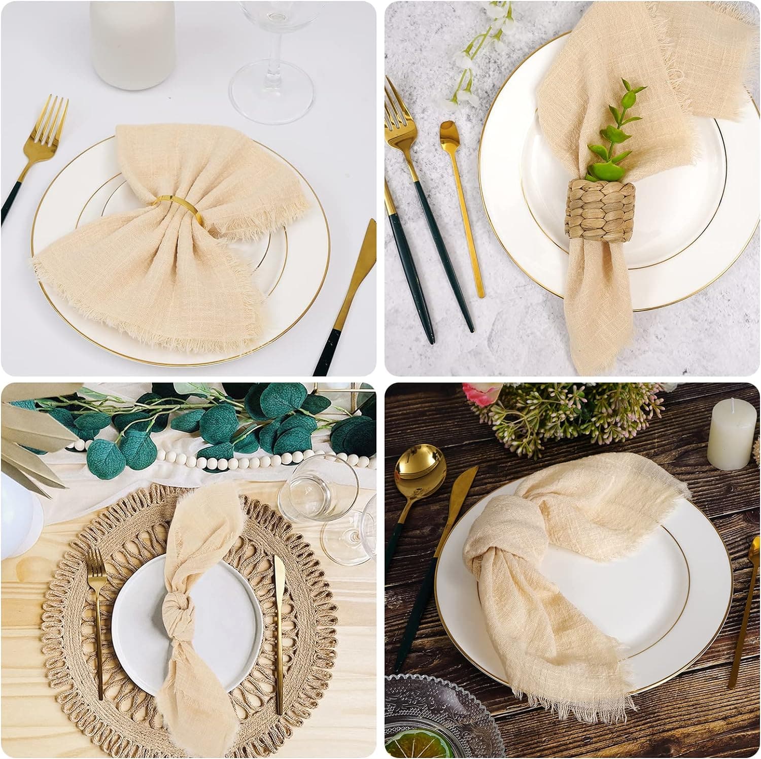 - 🥂Wide Applications:If you want a different look wedding or banquet,this wrinkled rustic boho dinner napkins is unique and delicate,it's an ideal choice instead traditional napkins. exquisite workmanship make it can match any important occasions,such as hotels,weddings,restaurant,banquet,parties,anniversary and picnic,very suitable as a housewarming gift for your friends or families,can easily be incorporated into different styles for any season and important occasion.