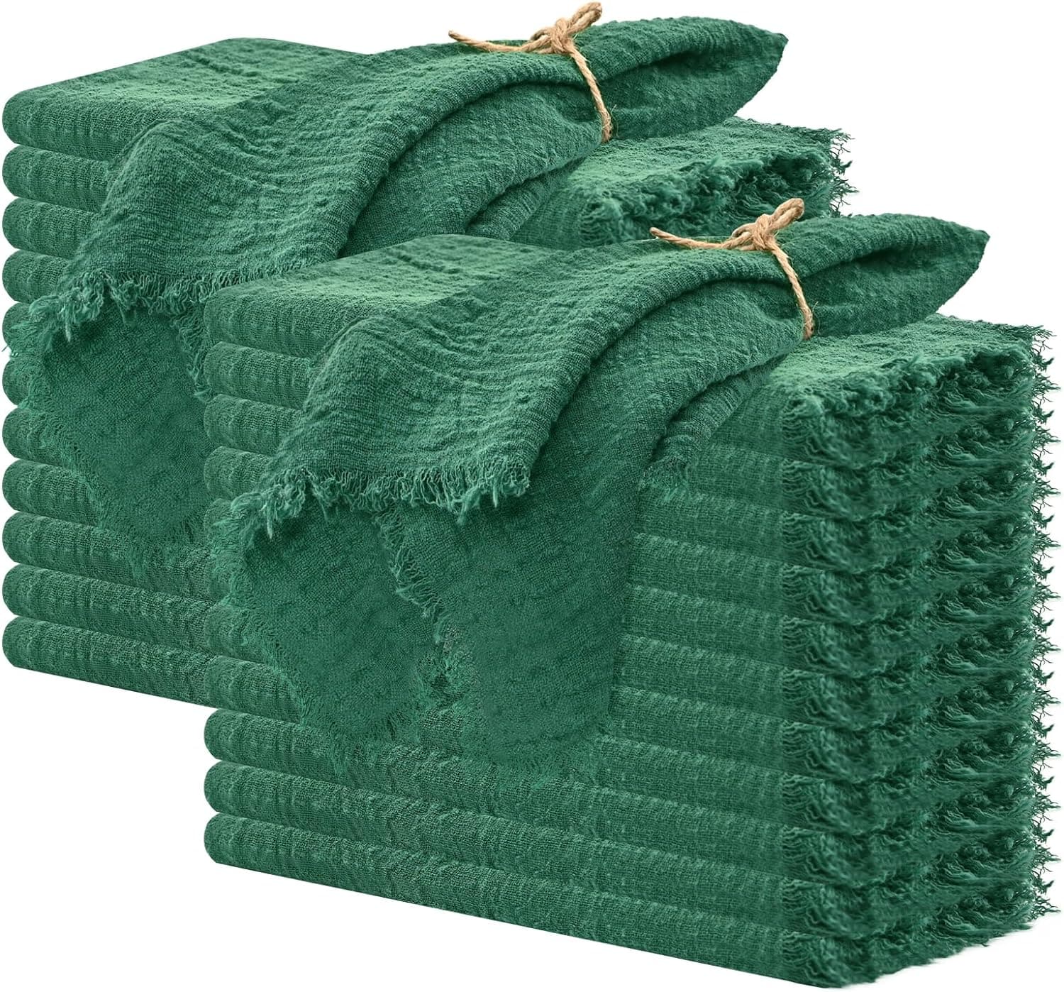 - 🥂Soft Cotton Napkins:In this package,you will get 24pcs delicate cloth napkins with fringe,made of quality cotton fabric.Durable,soft,light and breathable,will work well with rustic themed decor.Give your table a country vibe, elegant and beautiful.Fringe design just looks really chic and aesthetic,endows your guest a relaxed and return to nature environment,can easily be incorporated into different styles for any season and important occasion!