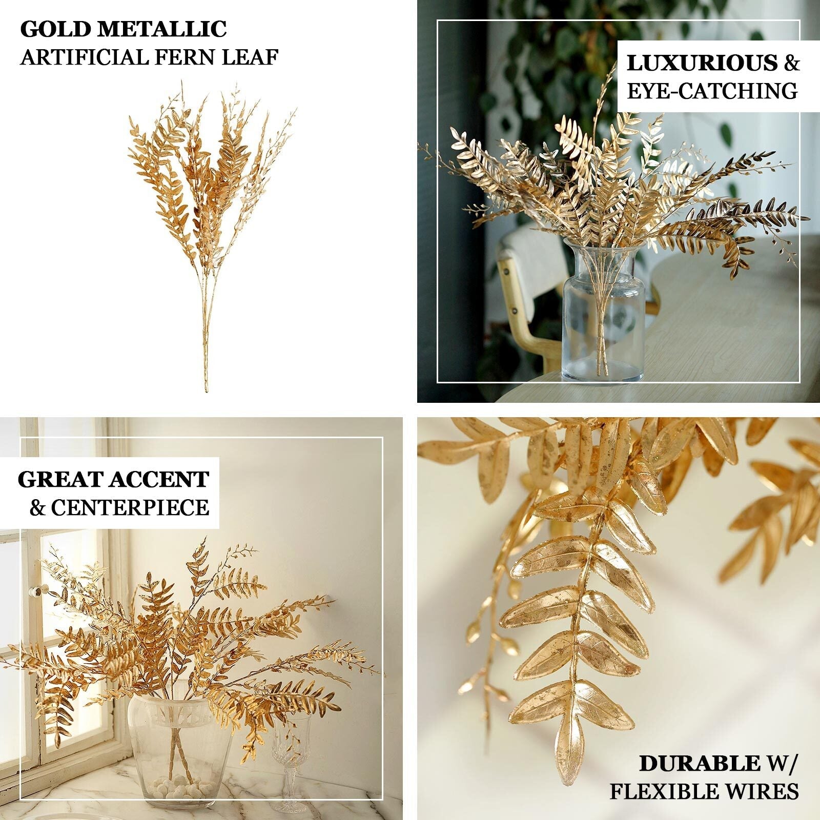 2 Pack Metallic Gold Artificial Fern Leaf Branches, Faux Decorative Bouquets 21"