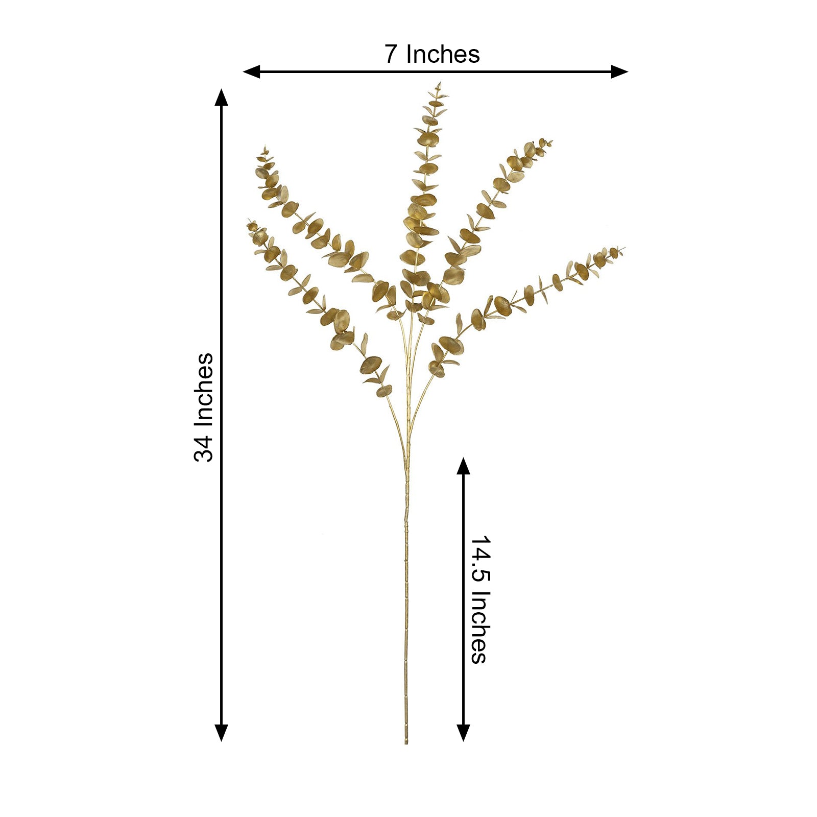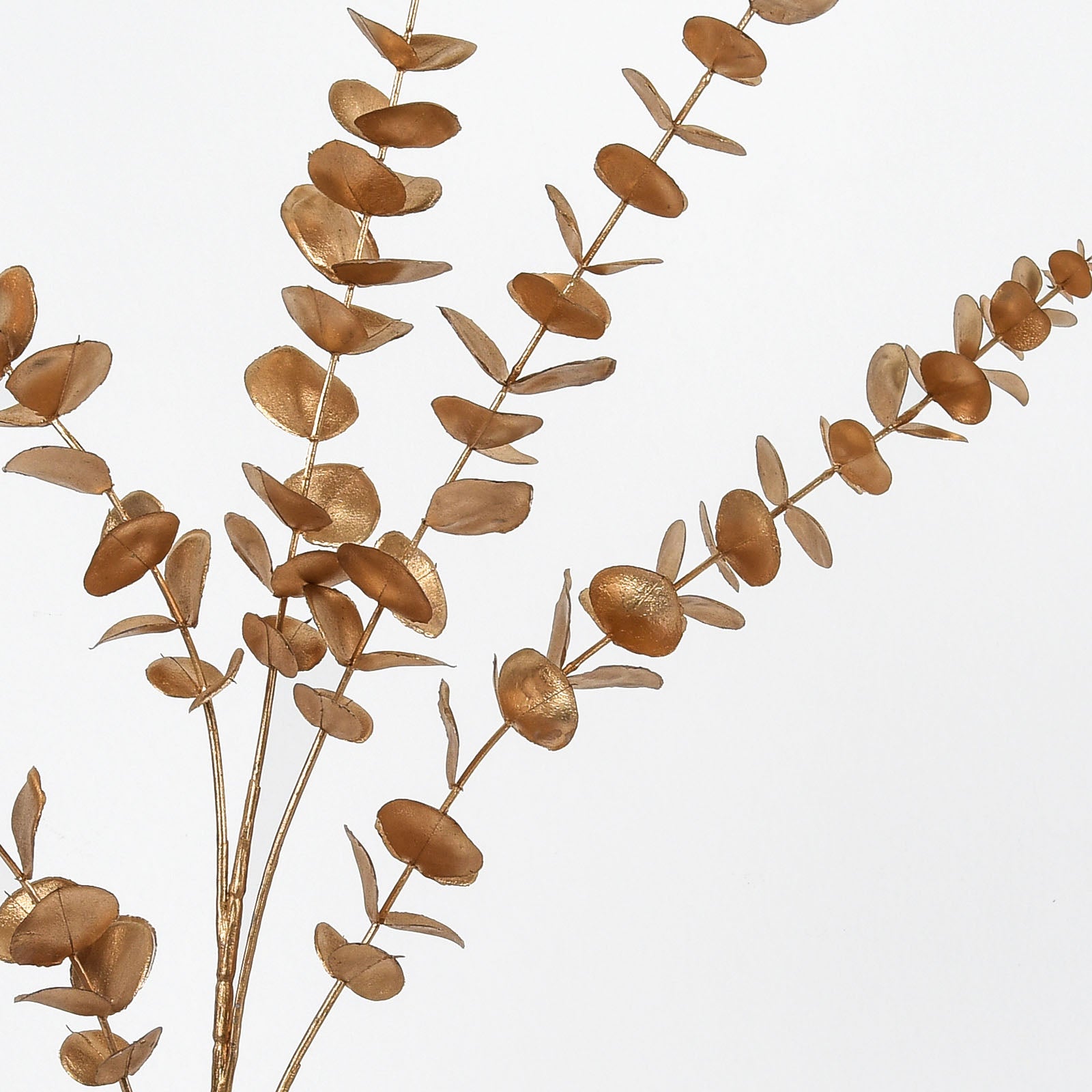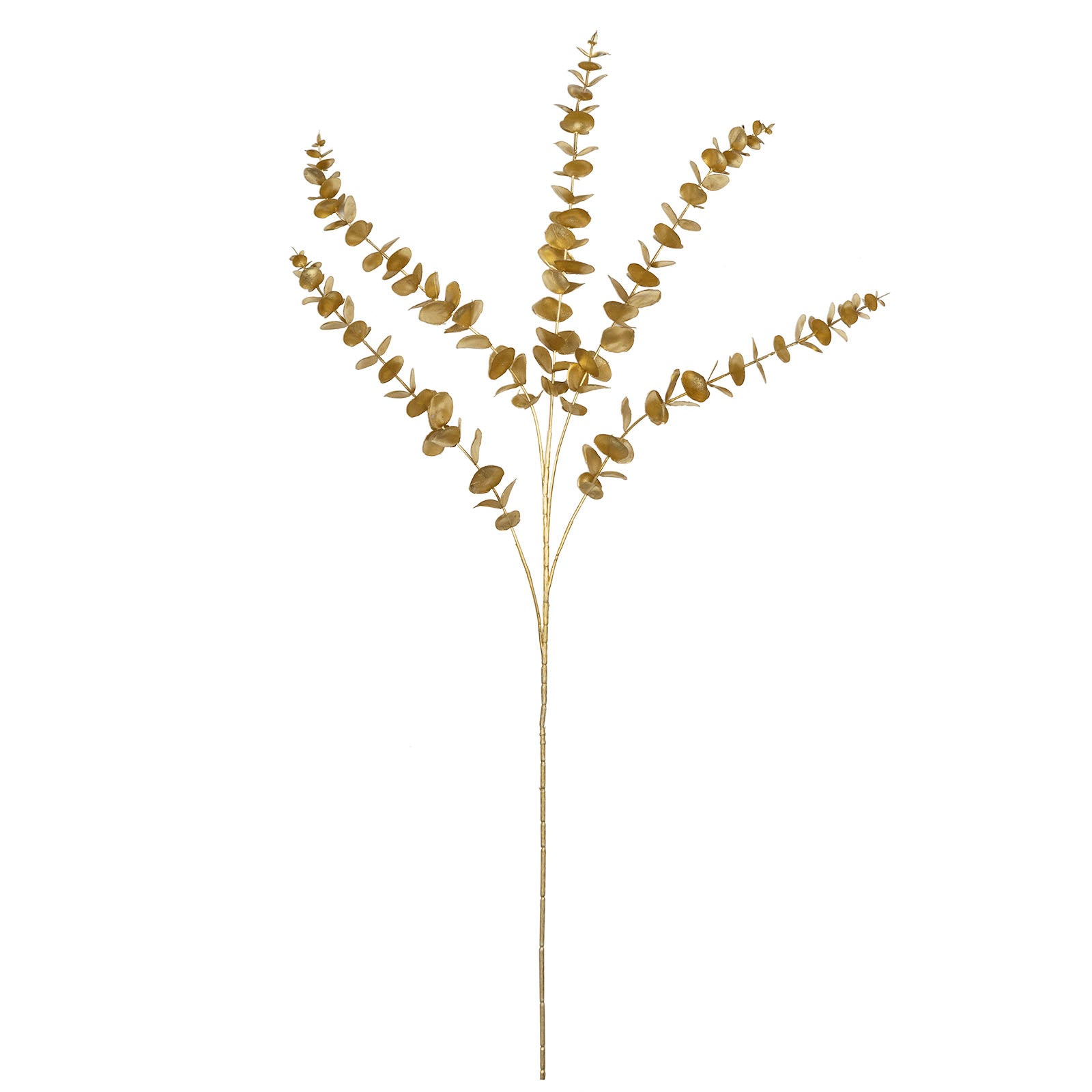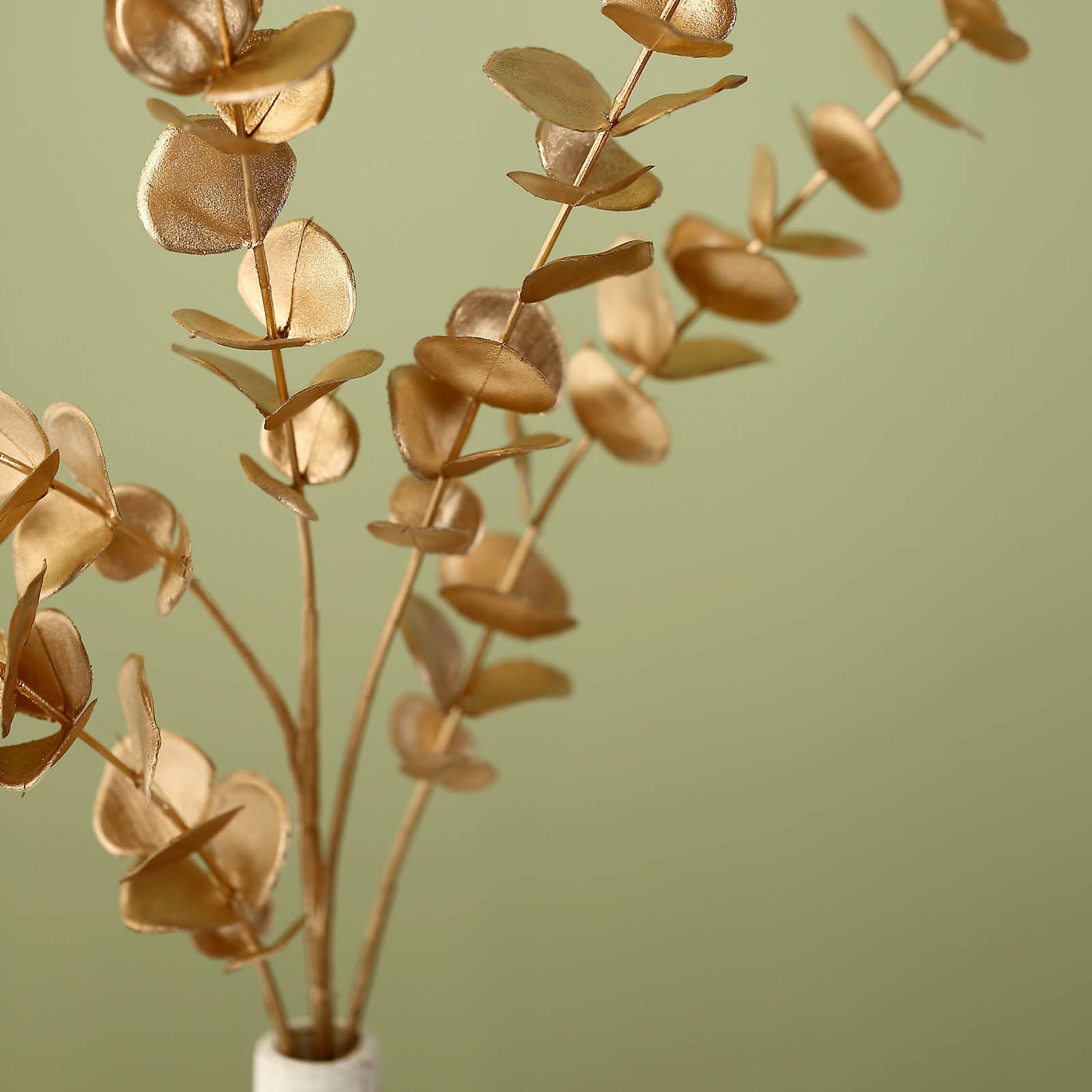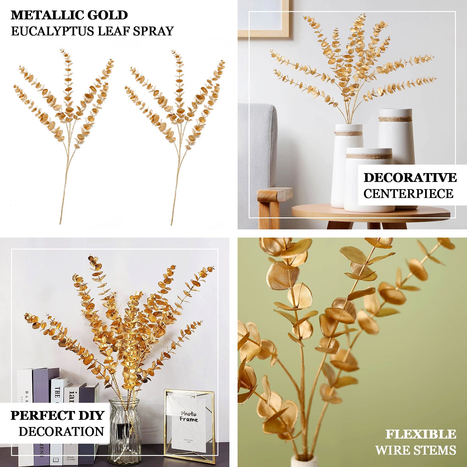 2 Stems Metallic Gold Artificial Spiral Eucalyptus Leaf Branch Vase Filler - 34"