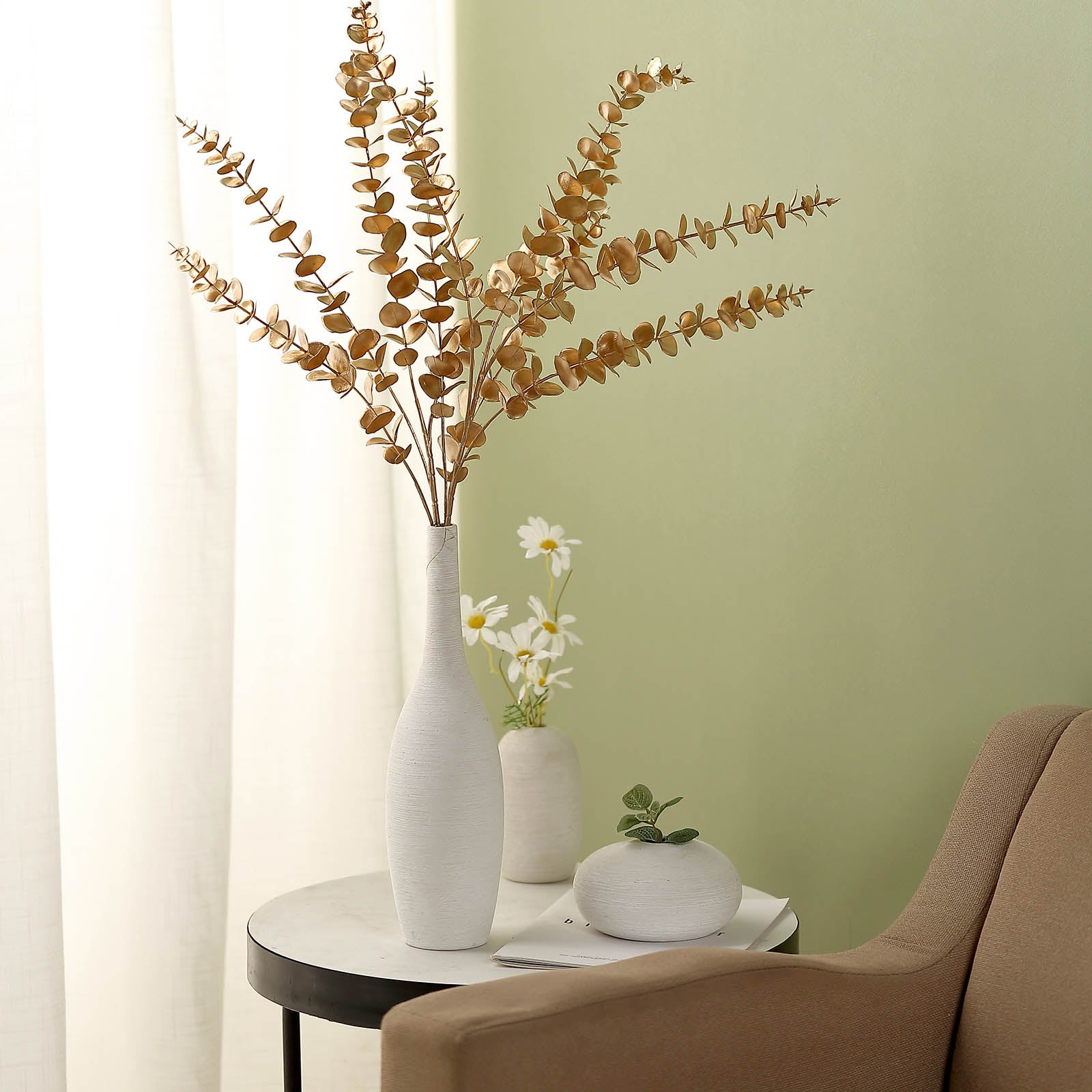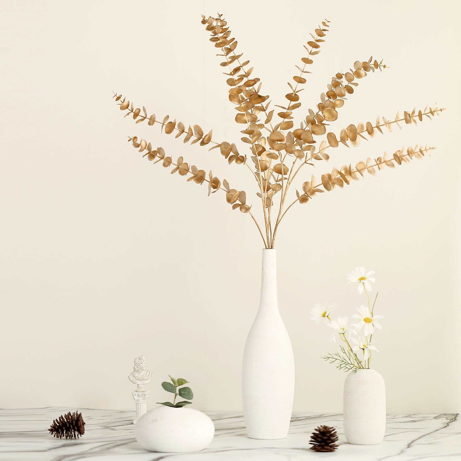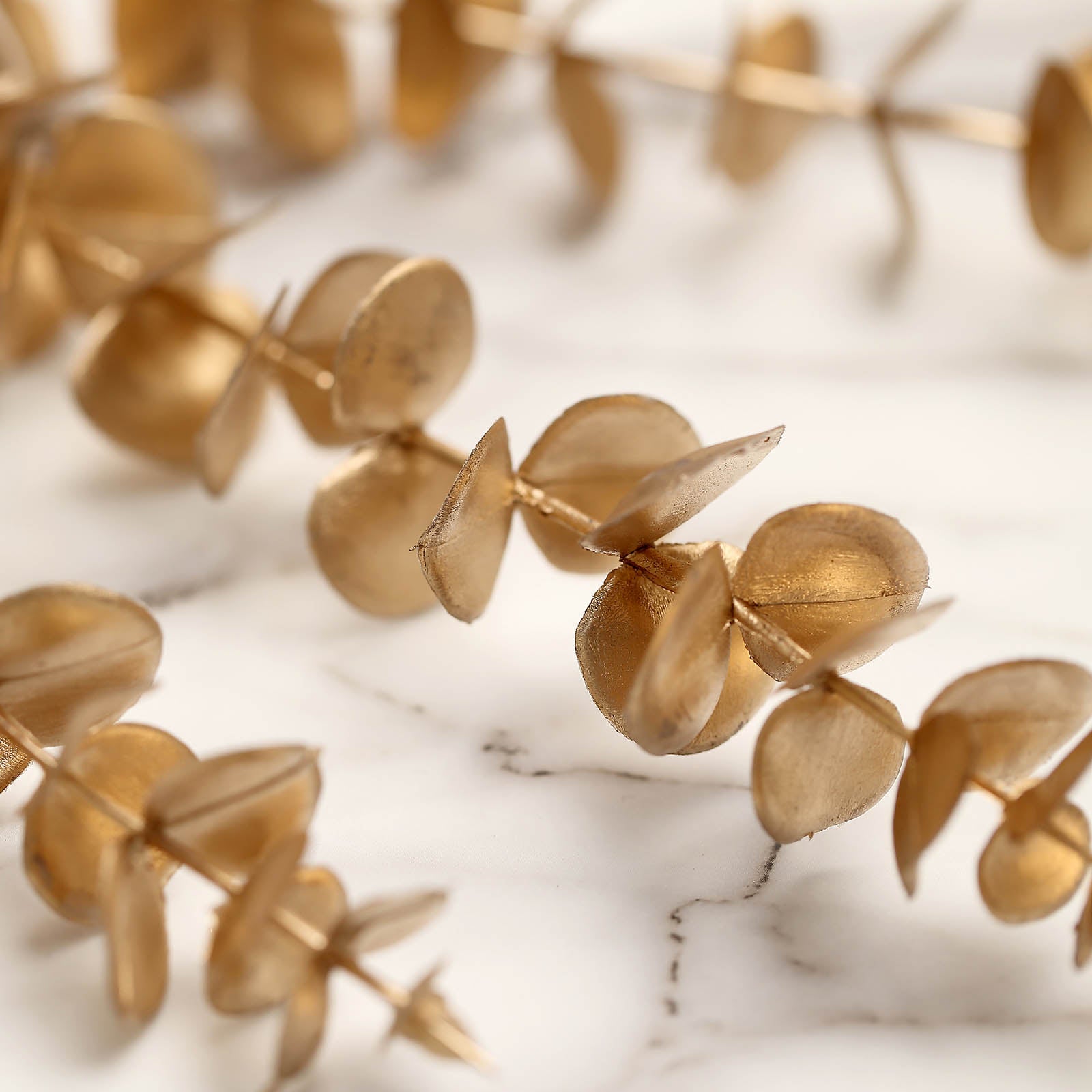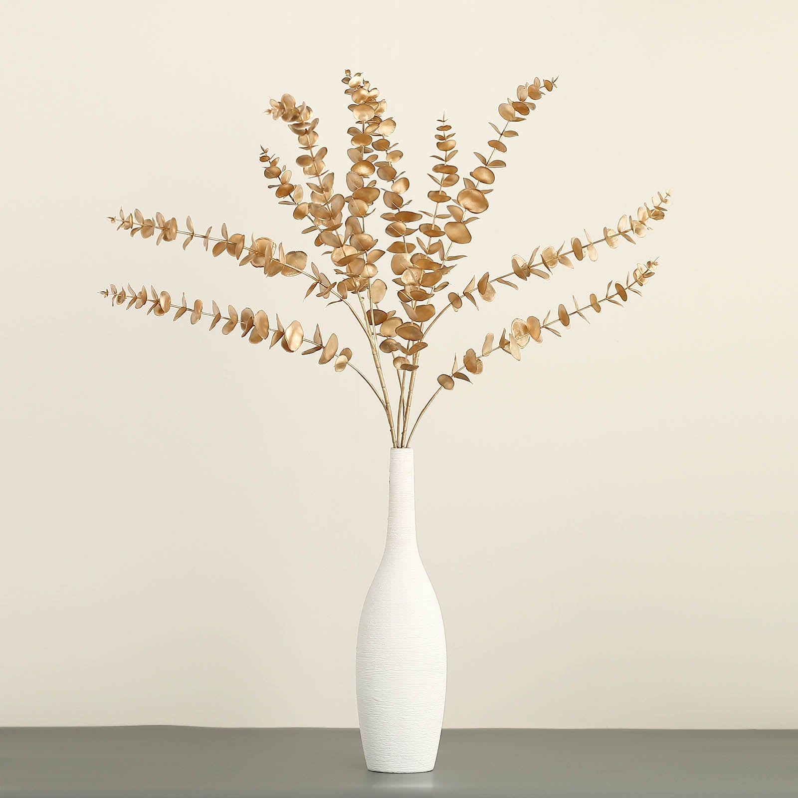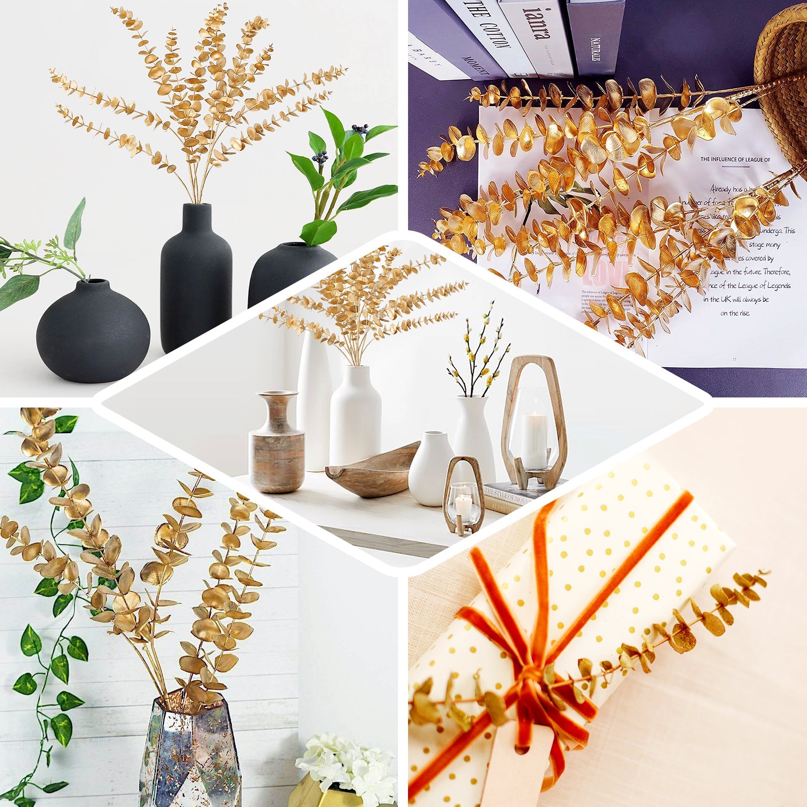 2 Stems Metallic Gold Artificial Spiral Eucalyptus Leaf Branch Vase Filler - 34"