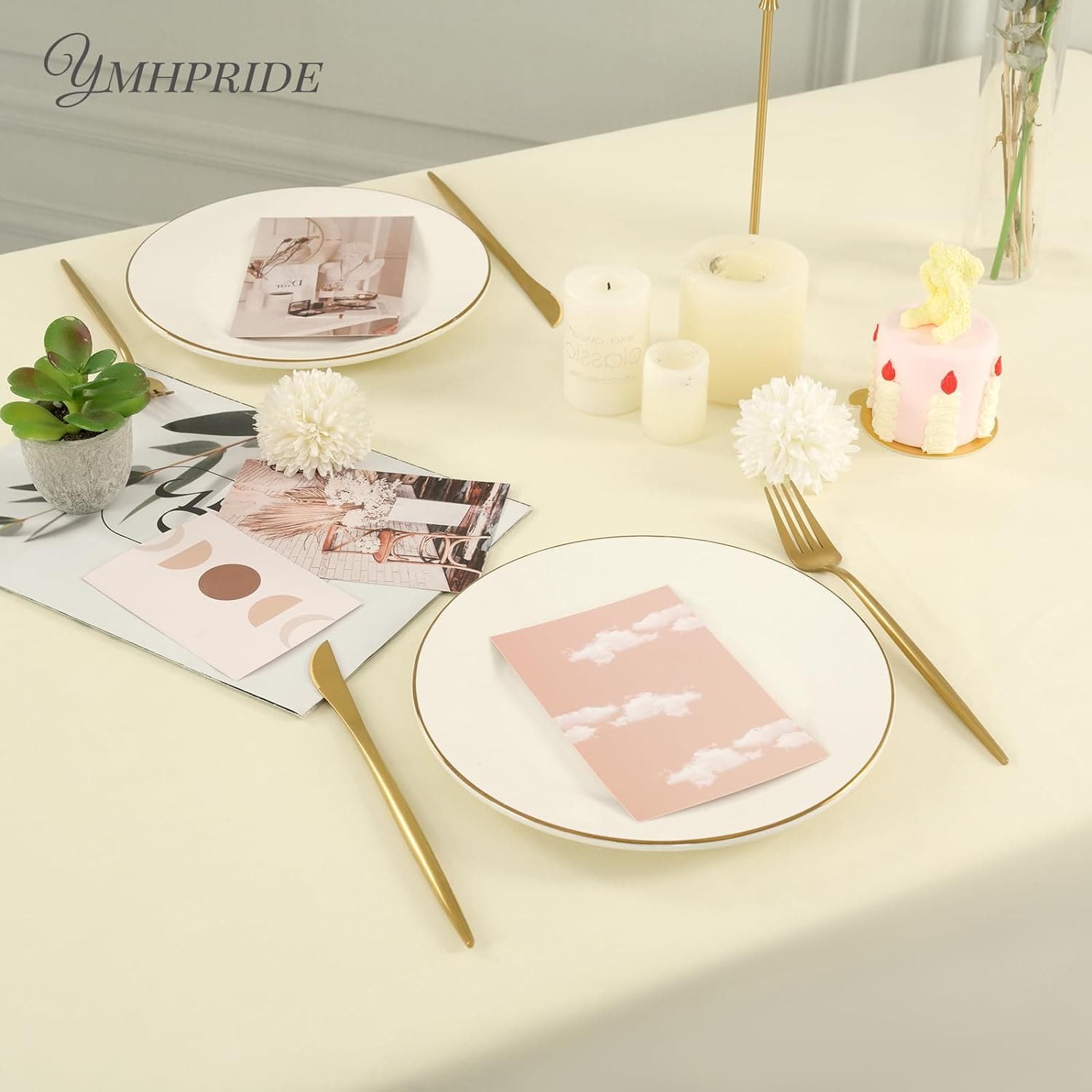 - 🎁 Widely Used Table cloths: This beige table cloth is reusable and suitable for parties, wedding receptions, baby showers, buffet dinners, dining tables, tea tables, parties, birthdays, cafes, banquets, picnics, barbecues, camping, indoor, outdoor and Everyday use. YMHPRIDE tablecloths can always add a more elegant dining setting to your party events.