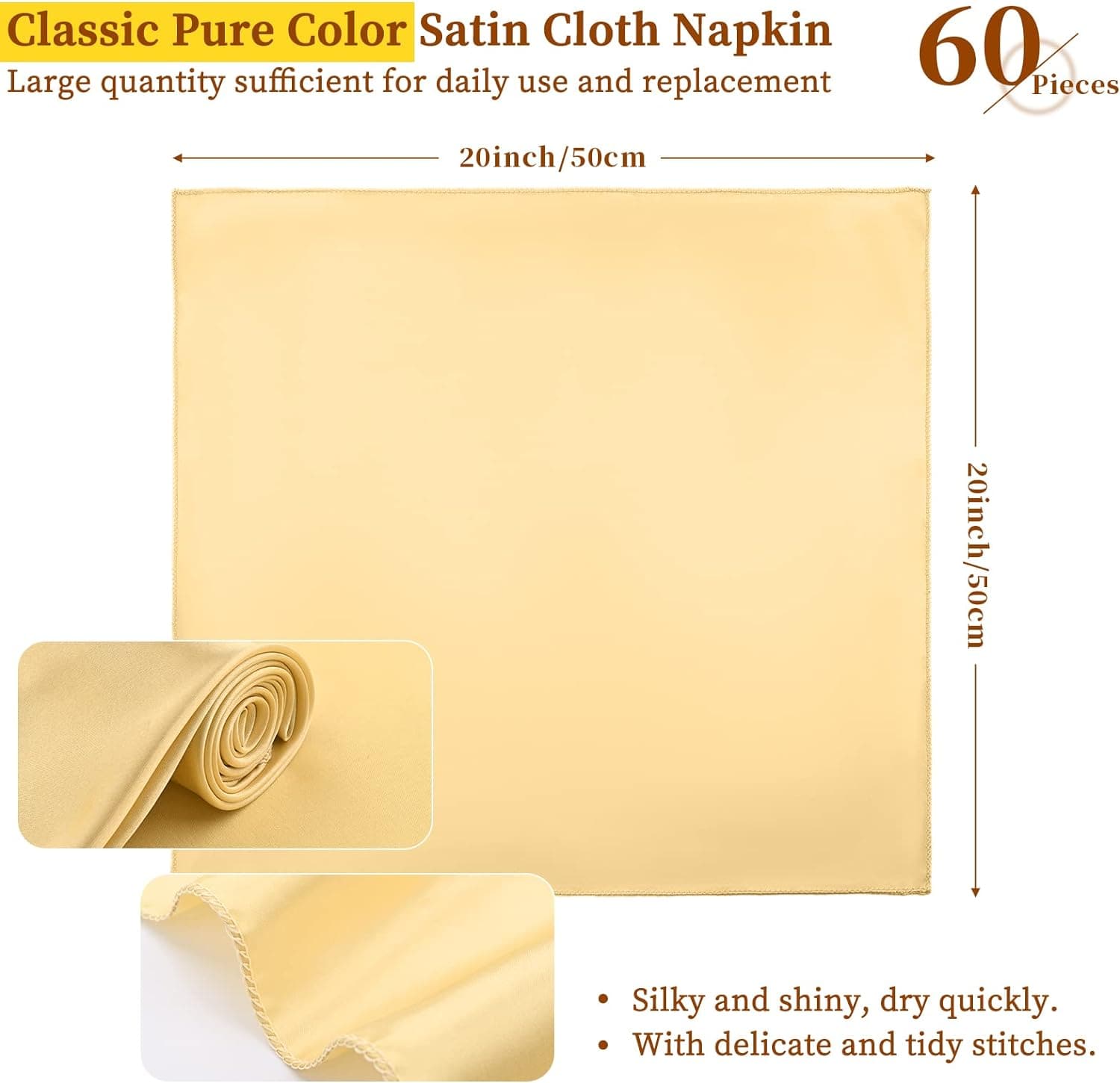 60 Pack Satin Napkins Banquet Restaurant