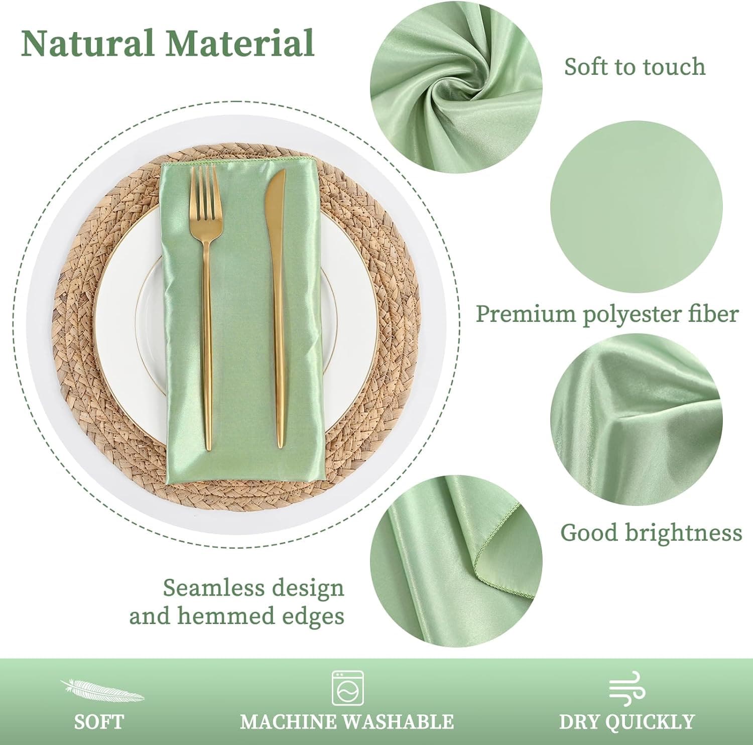 - 💐【Excellent Service】These sage green satin napkins can be washed multiple times, and no fluffing, no pilling and no fiber during washing.We promise our satin napkins are high quality.If you have any questions, please tell us.We will 100% responsible for those Low probability misfortune orders, we can do refund or send new one for free or other solution of you prefer.Worry-free after-sales.Thank you for your continuous support.