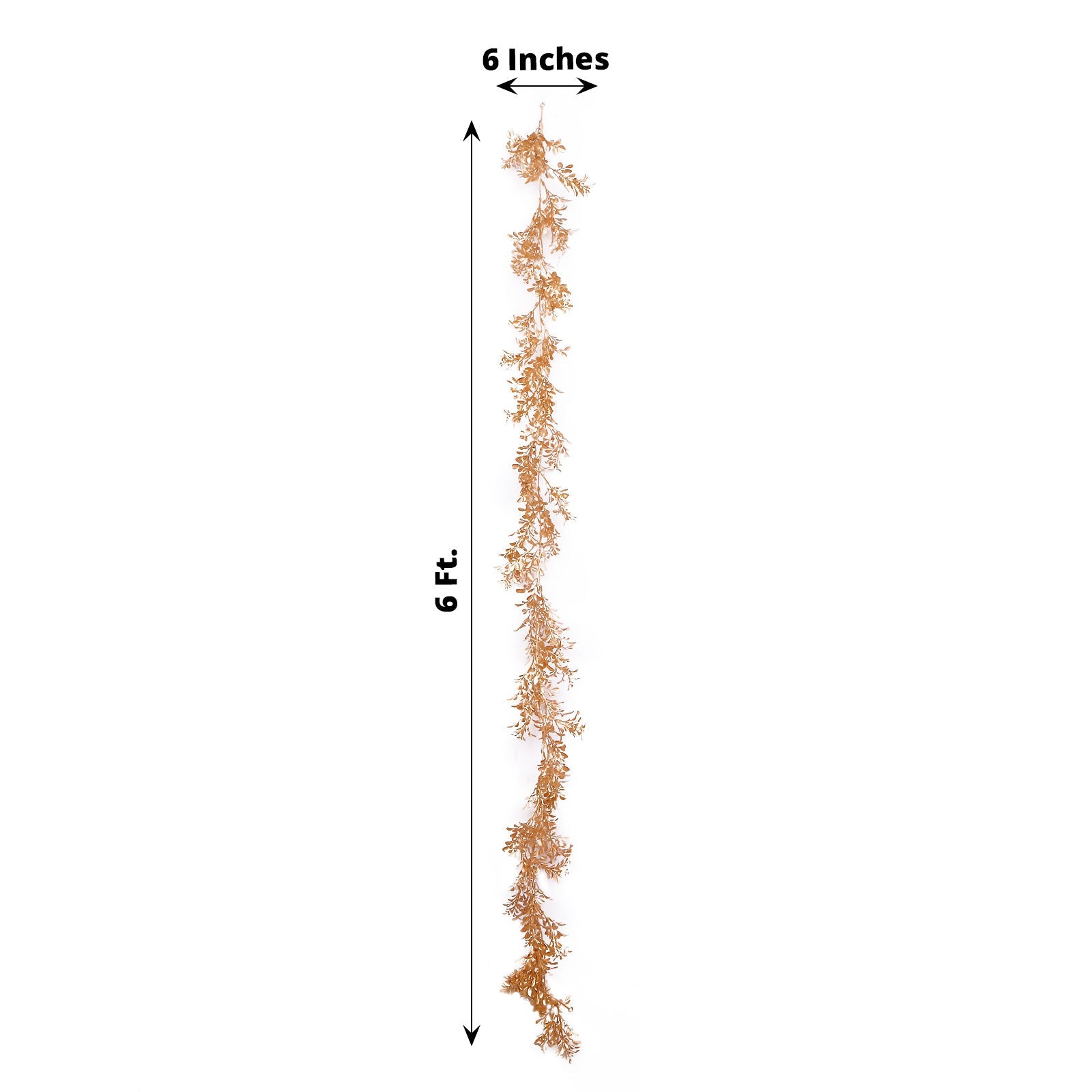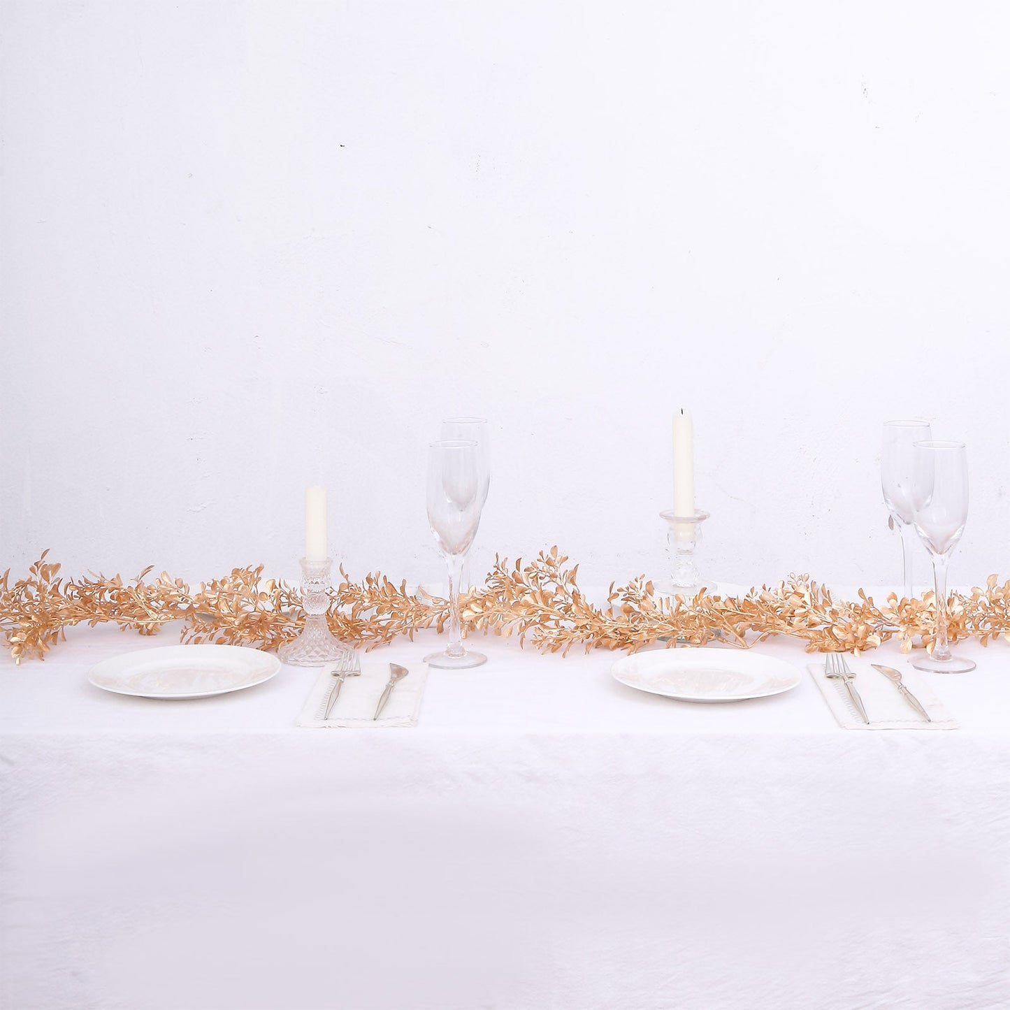 Metallic Gold Artificial Boxwood Leaf Table Garland, Faux Decorative Hanging Vine 6ft