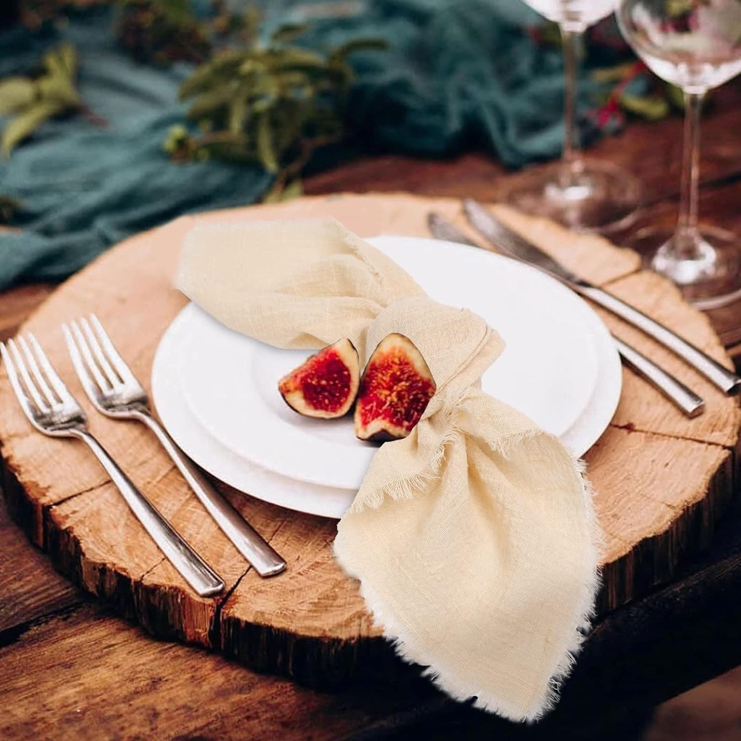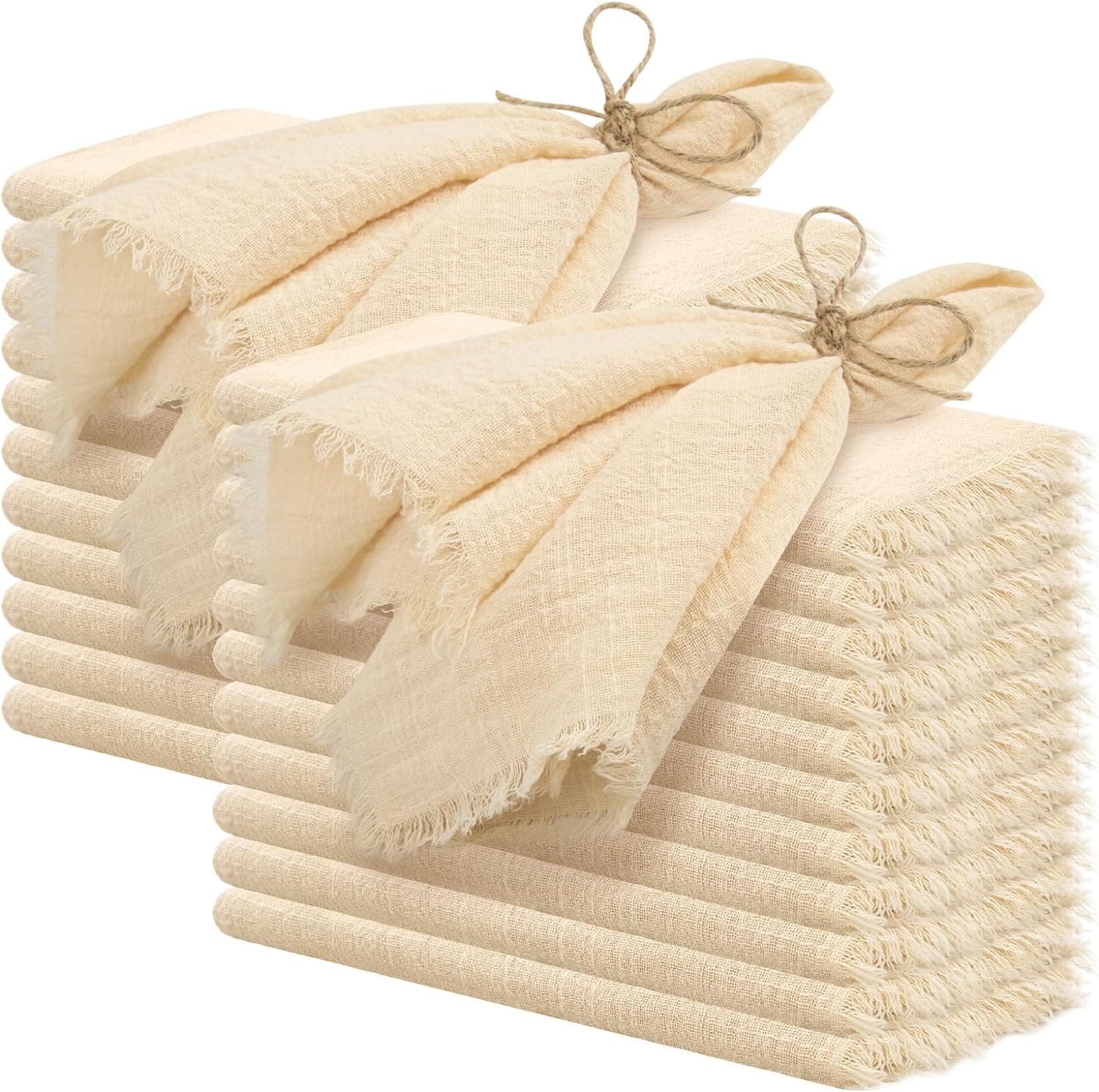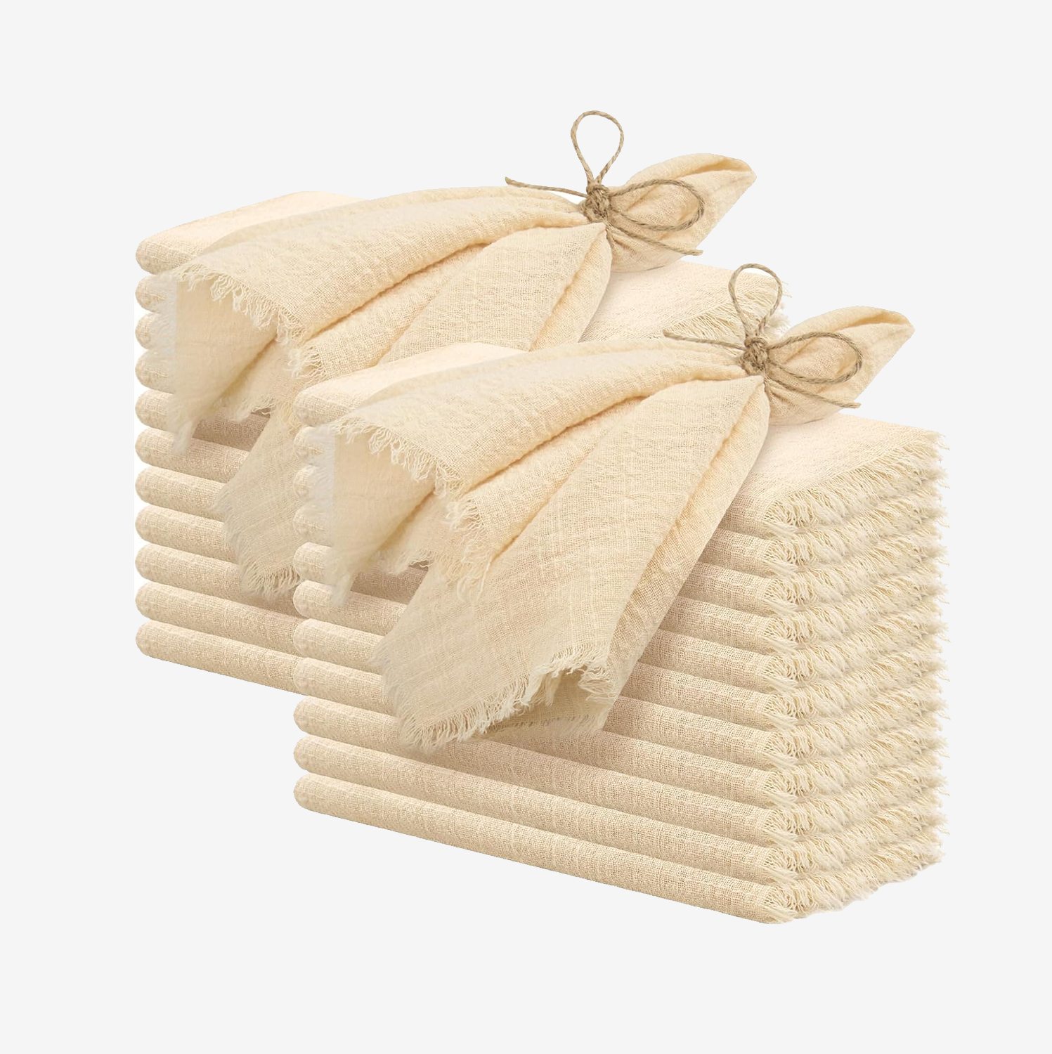 Handmade Gauze Napkins with Fringe 16x16 Inches ,Set of 24 -100% Cotton Napkins,Delicate Handmade Cloth Napkins Rustic Dinner Napkins