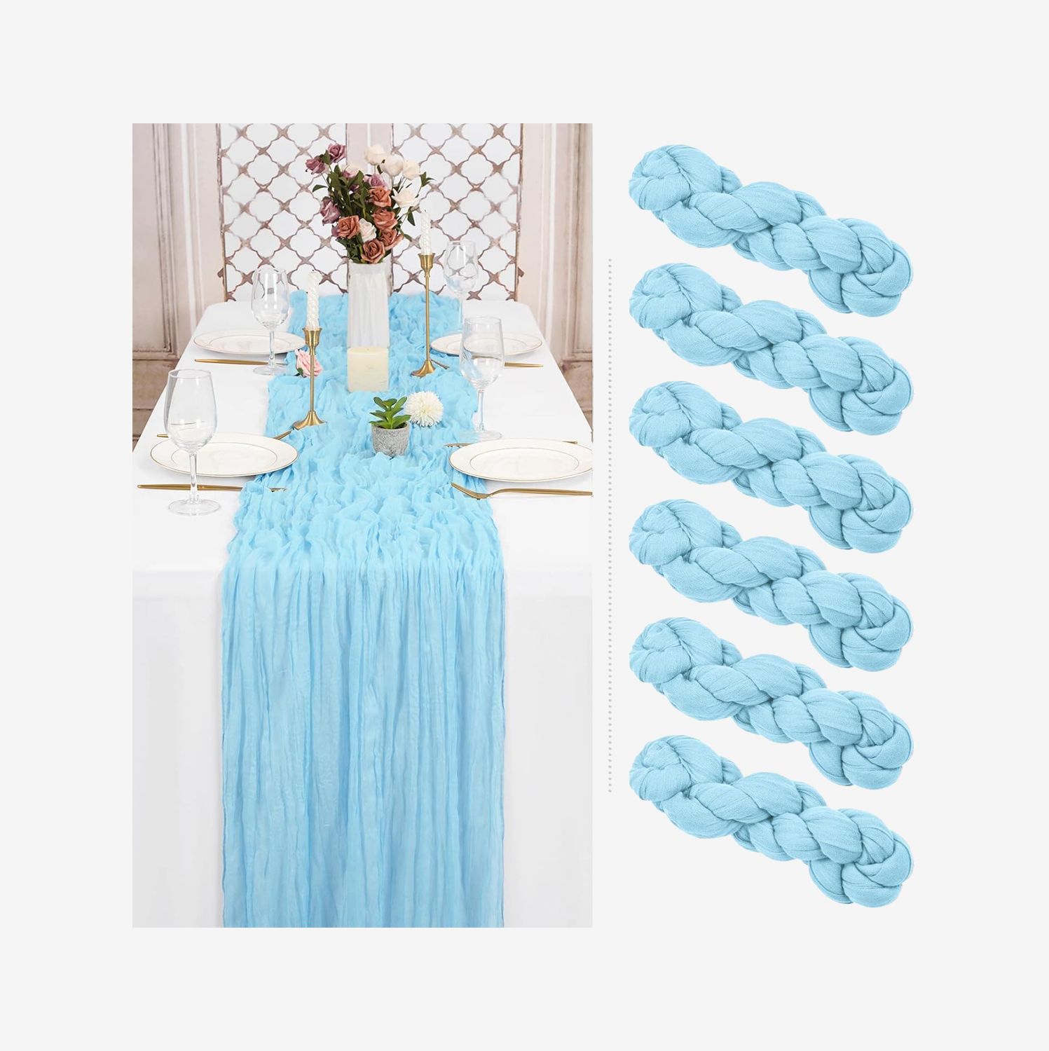 • ❤️【Product Included】: You will receive 6 pack blue cheesecloth gauze table runners. Product size: 35 inches wide and 120 inches long, suitable for round or square tables that can accommodate 8-10 people. Perfect for romantic and elegant party events.
