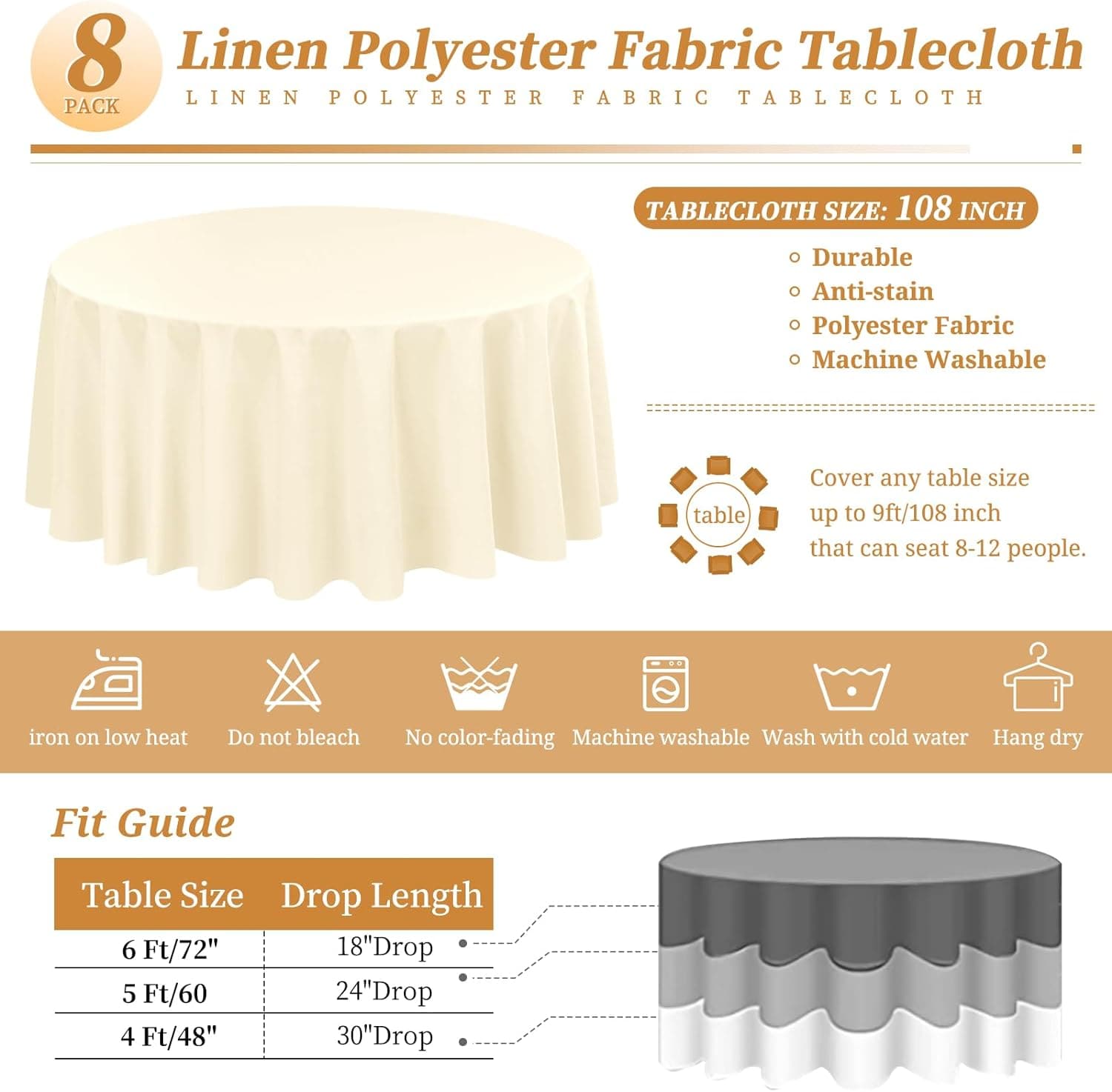 - ★Premium Tablecloth Fabrics: You can get 8 pieces white tablecloth, our tablecloth is made of soft 210 GSM 100% premium polyester fabric that resists wrinkling for an always crisp, polished look. does not contain harmful chemicals and has no pungent odor, perfect to protect and decorate your tables.