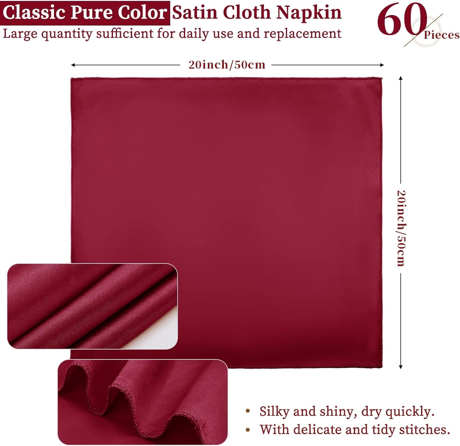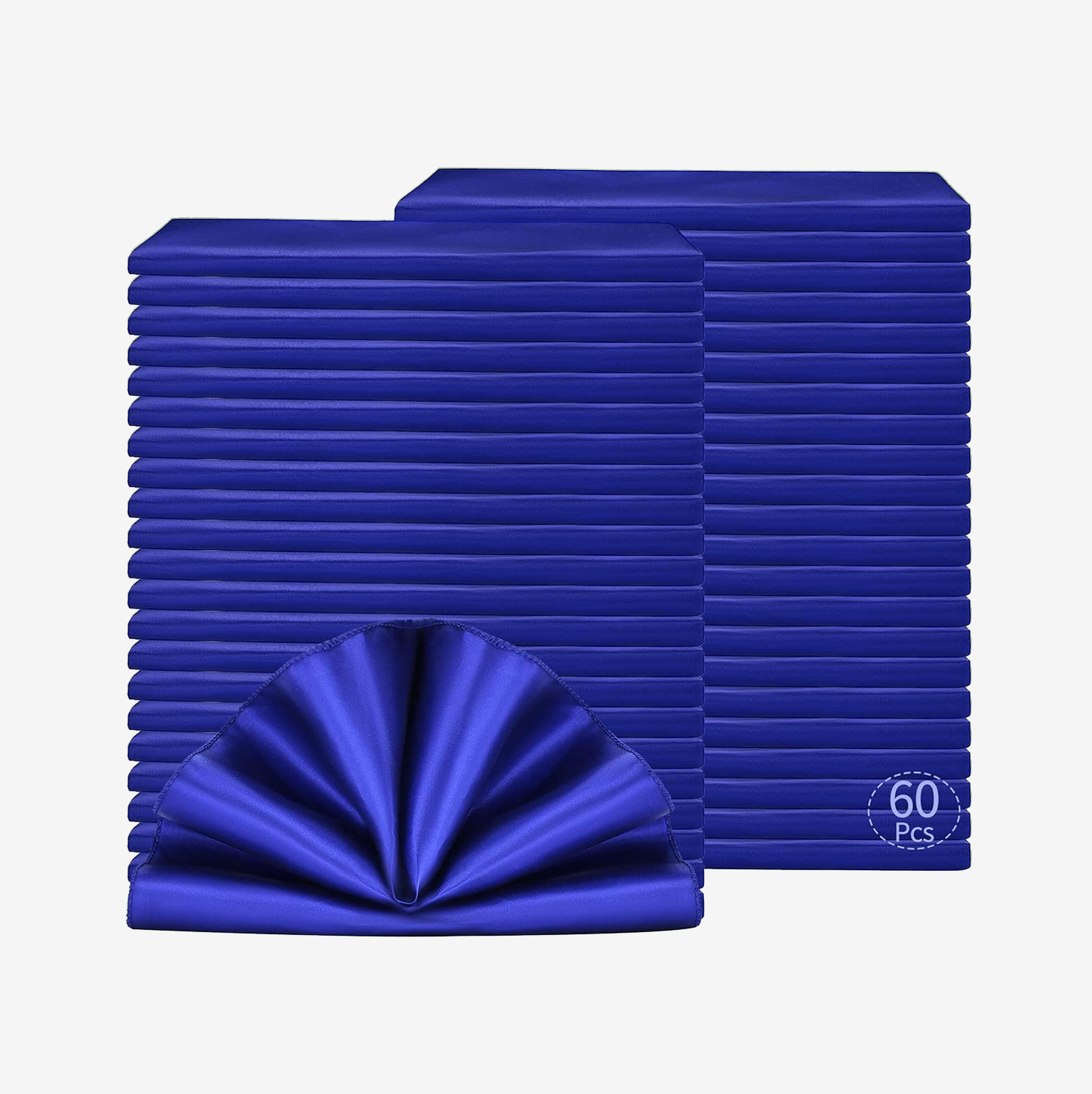 - 🍾【Classy dinner napkins】Each package contains 60 pieces of satin napkins in blue, each is 20 x 20 inches/50 x 50 cm in size.Add a classic touch to any place setting with these elegant, professional-grade table napkins.60 pieces of satin napkins are enough to meet all your household needs and replacement for everyday.It can also accommodate a great number of guests at a time.Save more!