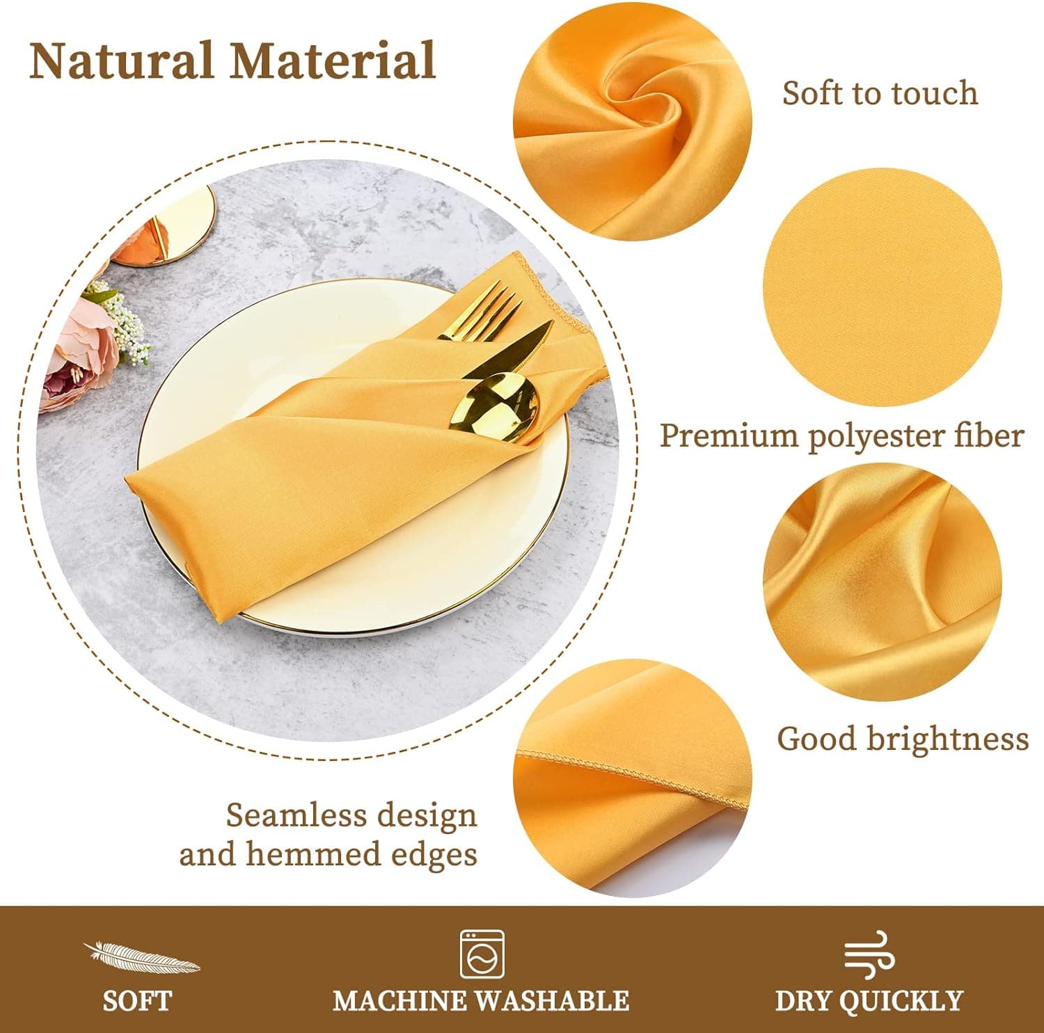 - 🍾【Excellent Service】These satin napkins can be washed multiple times, and no fluffing, no pilling and no fiber during washing.We promise our satin napkins are high quality.If you have any questions, please tell us.We will 100% responsible for those Low probability misfortune orders, we can do refund or send new one for free or other solution of you prefer.Worry-free after-sales.Thank you for your continuous support.