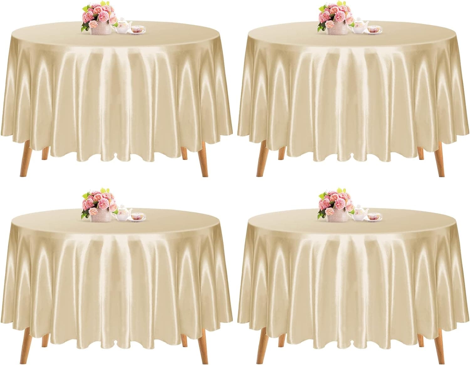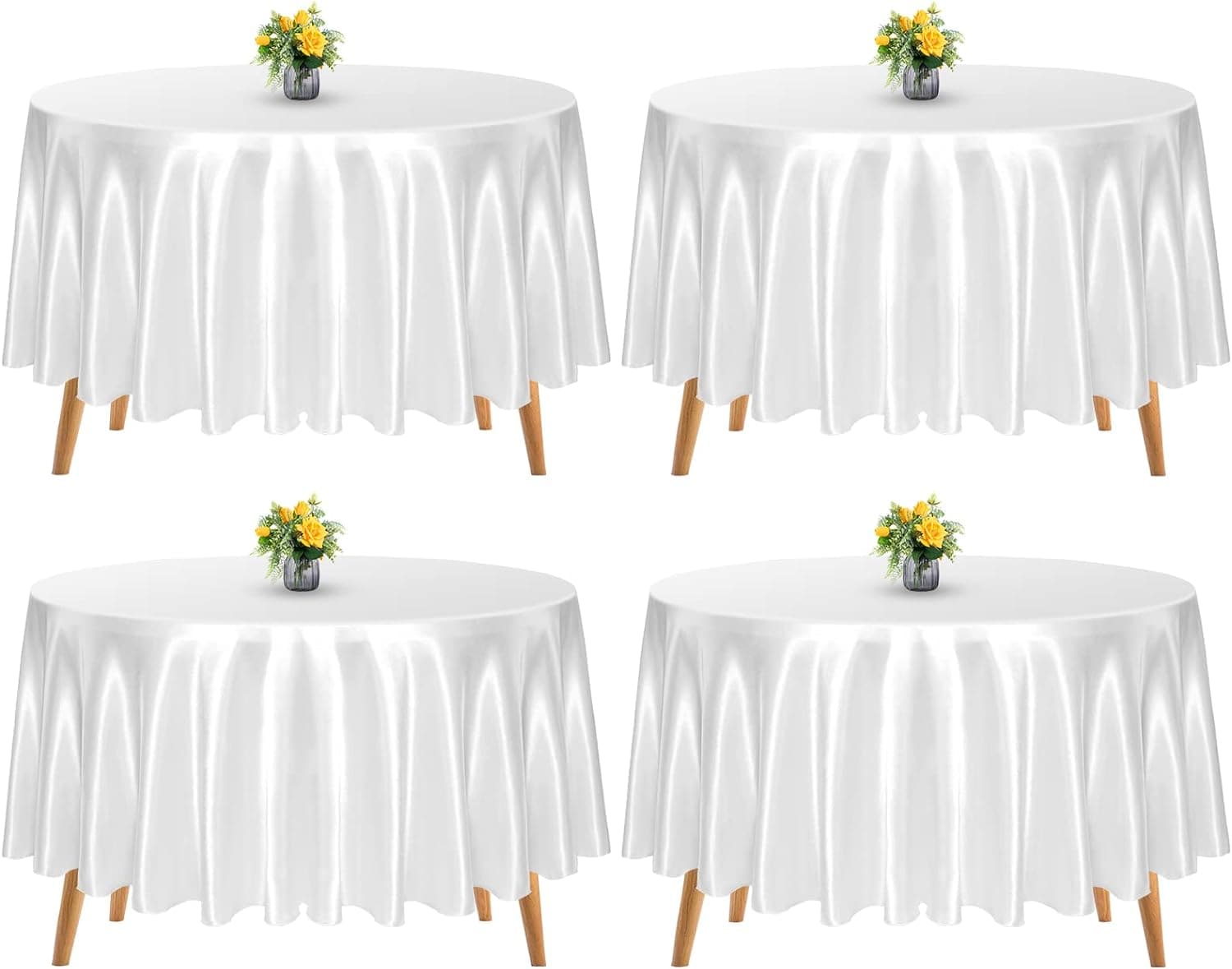 🌼4 Packs White Satin Tablecloth Round Silky Satin Table Cover 108inch Large Size Satin Tablecloth Bright Tablecloth Smooth Fabric Table Decoration for Parties Holiday Wedding Birthday Banquet (White)