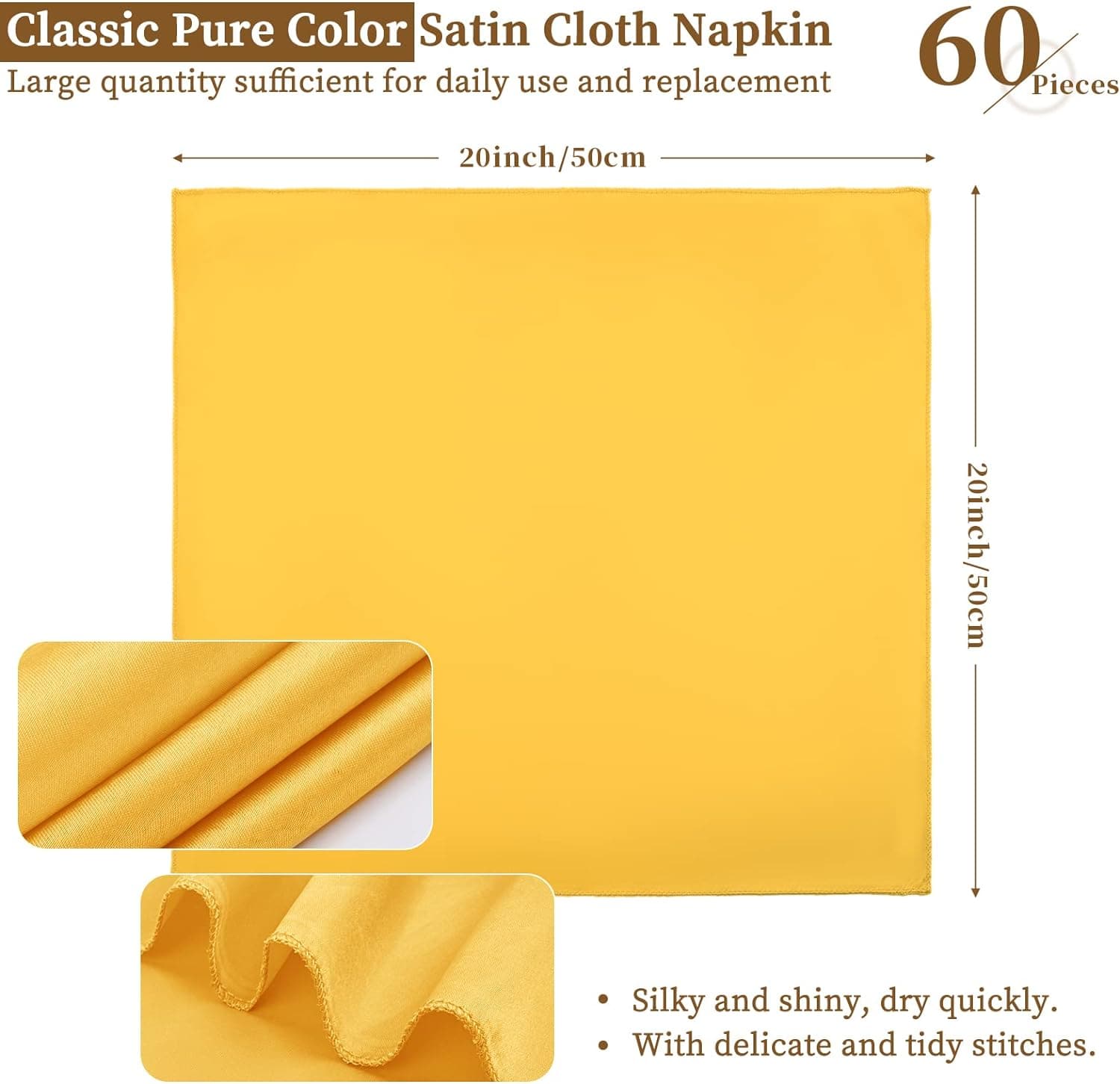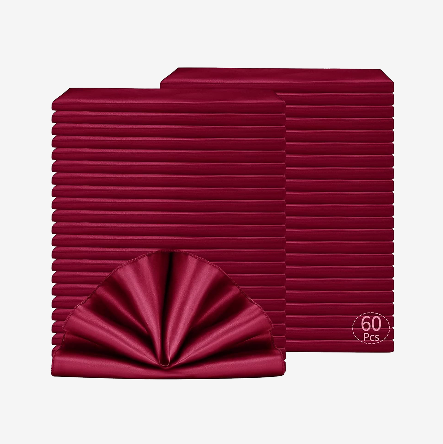 • 🍷【Classy dinner napkins】Each package contains 60 pieces of satin napkins in burgundy, each is 20 x 20 inches/50 x 50 cm in size.Add a classic touch to any place setting with these elegant, professional-grade table napkins.60 pieces of satin napkins are enough to meet all your household needs and replacement for everyday.It can also accommodate a great number of guests at a time.Save more!