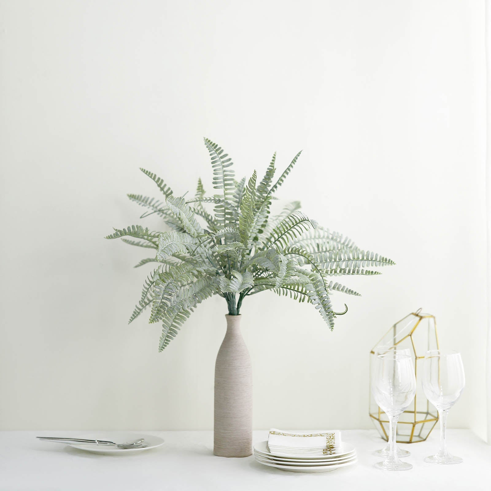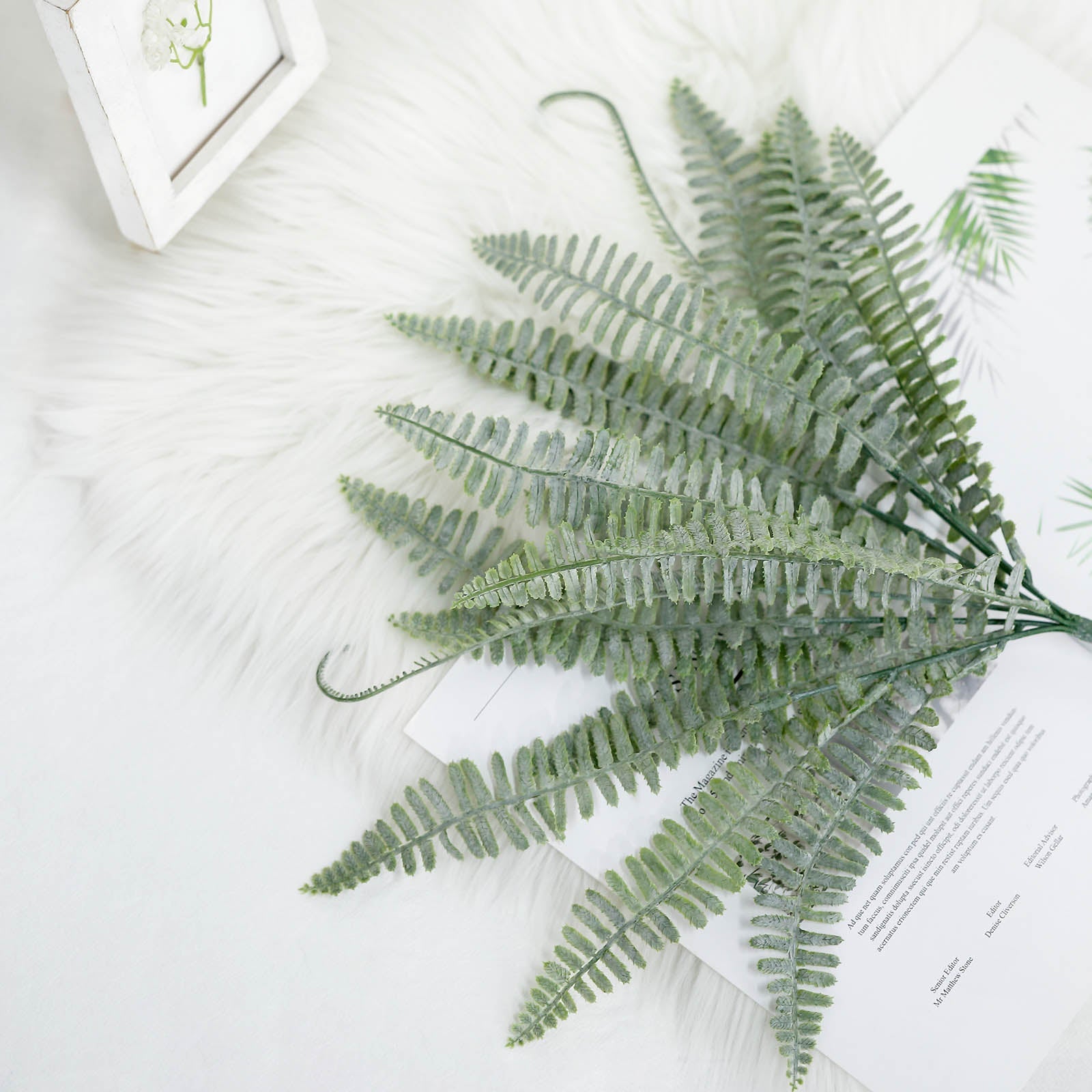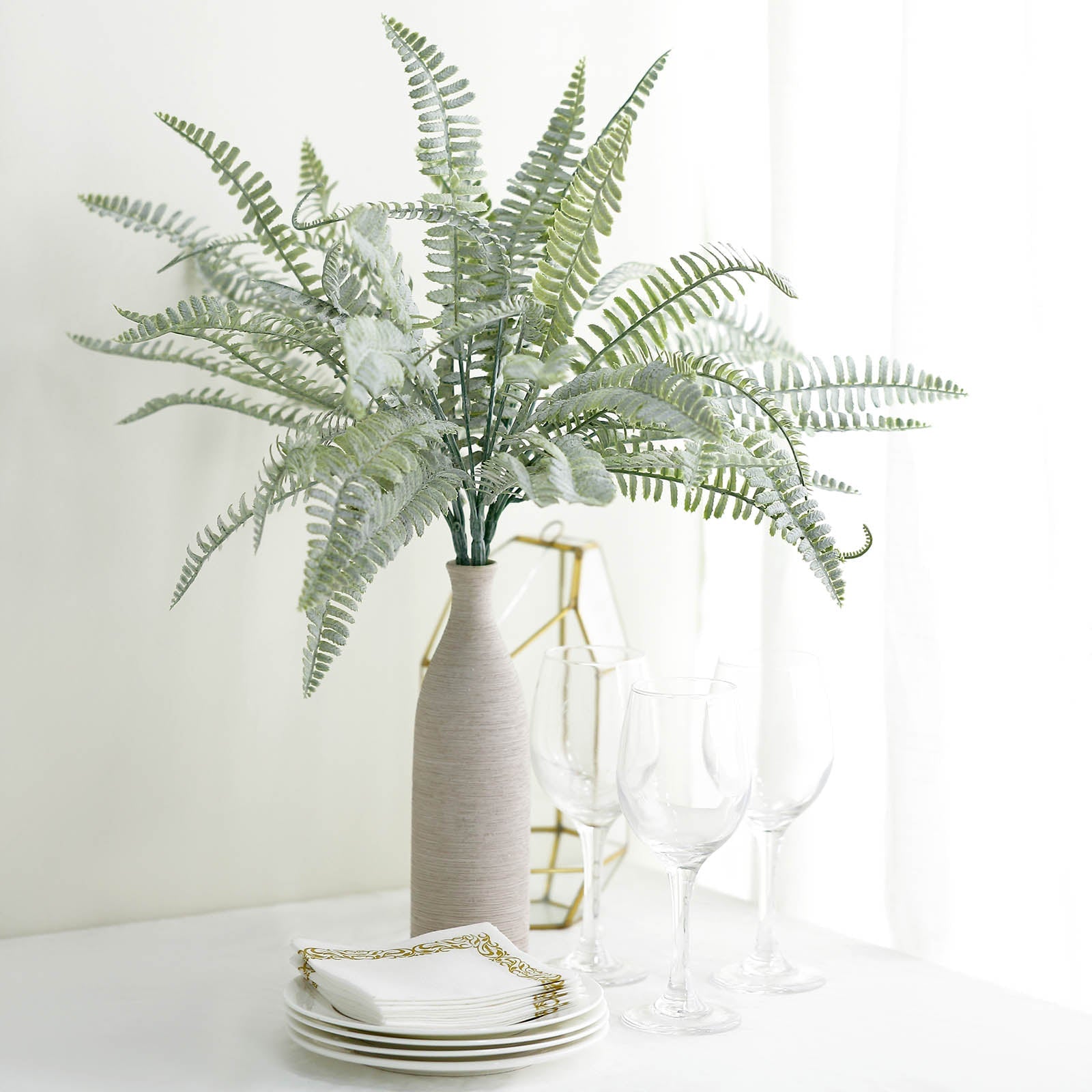 2 Stems Frosted Green Artificial Boston Fern Leaf Plant Indoor Spray