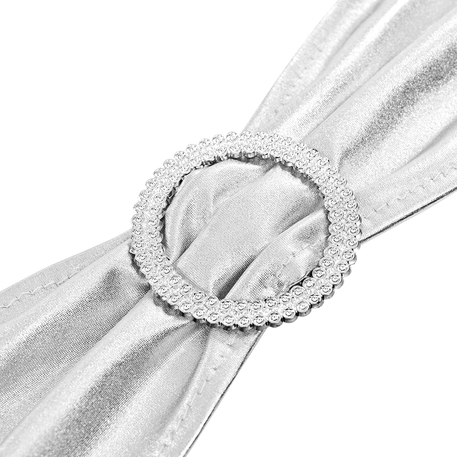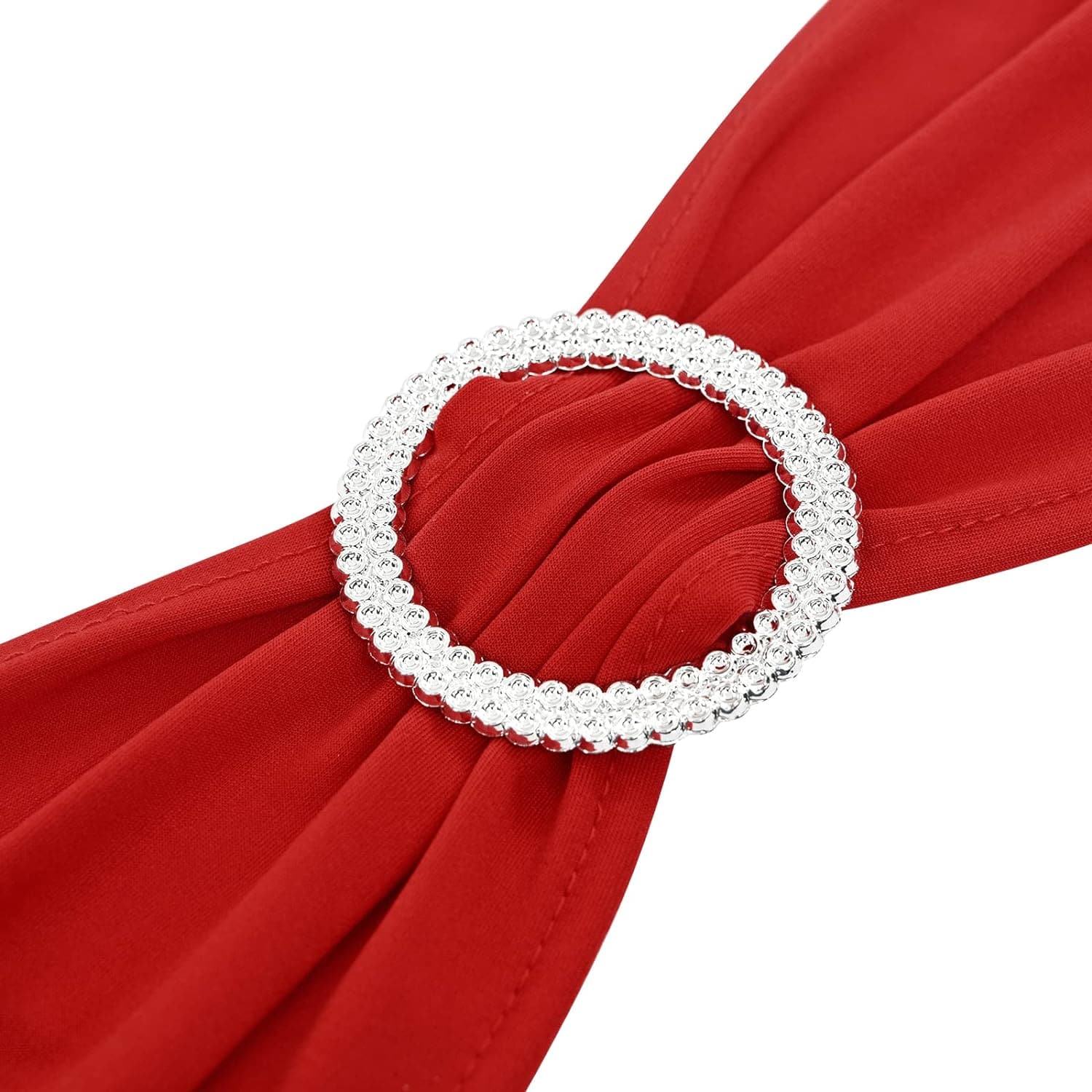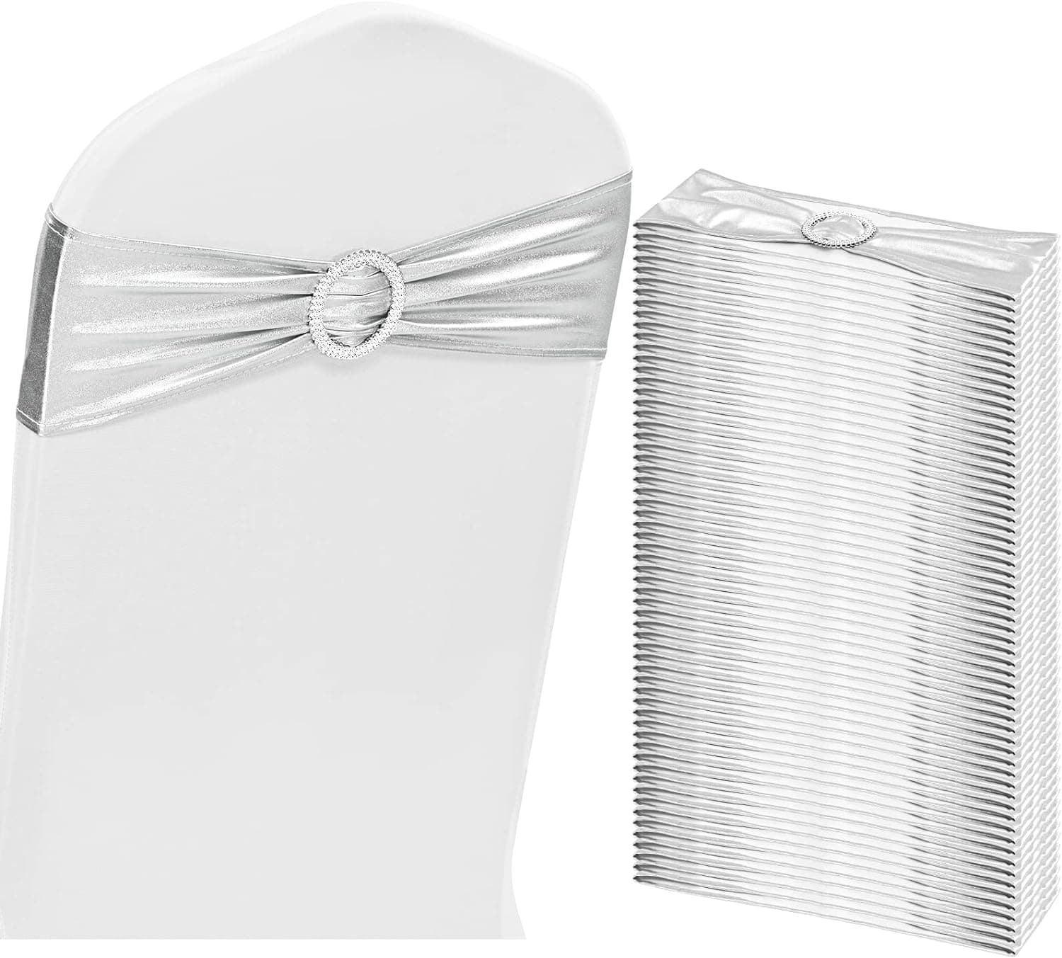 • Perfect size: Each stretchable chair sashes measures about 14 x 6 inches, 20 inches long in max stretched condition fit a variety of banquet, patio, or dining table chairs. Each spandex chair bands comes with a sliding round plastic buckle (2.5 inch diameter). Our chair bands will help you enhance the decor of your eventand add a touch of luxury andelegance.