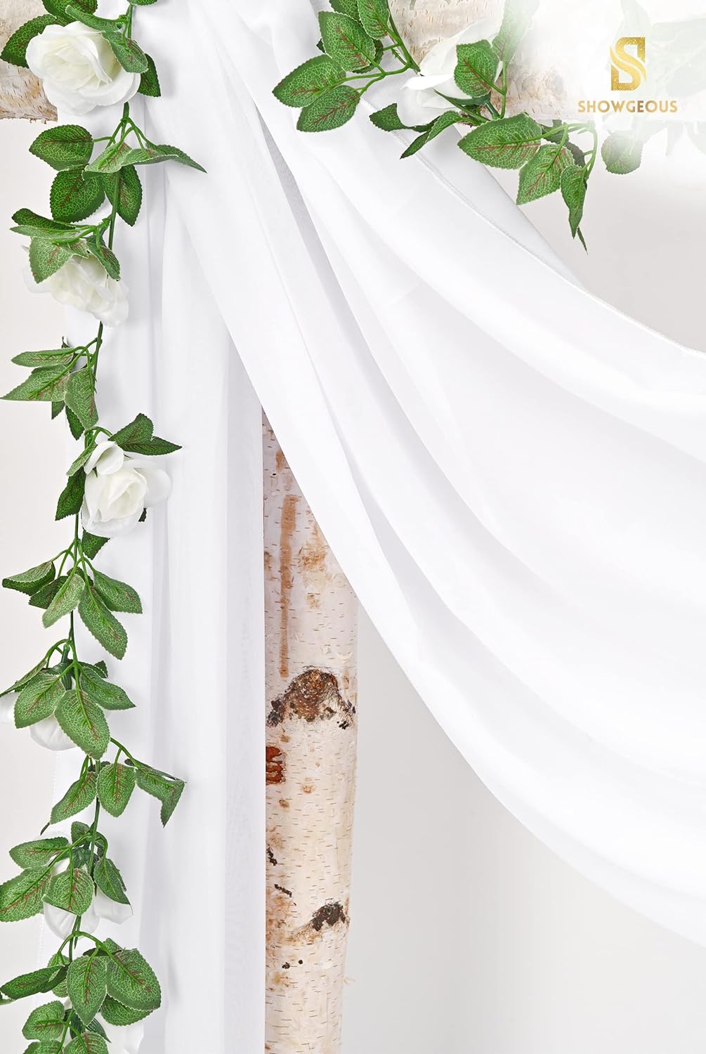- 🥂【Multipurpose Draping Fabric for Wedding】Beautiful wedding arch decorations is perfect for wedding arches, ceremony backdrop, photo backgrounds, and even home interior decoration to add a touch of purity.You can hang some balloon garland, happy birthday banners, glitter star garland, window curtain lights, artificial flowers with stem to add an elegant and romantic vibe.Best wedding decoration gift.